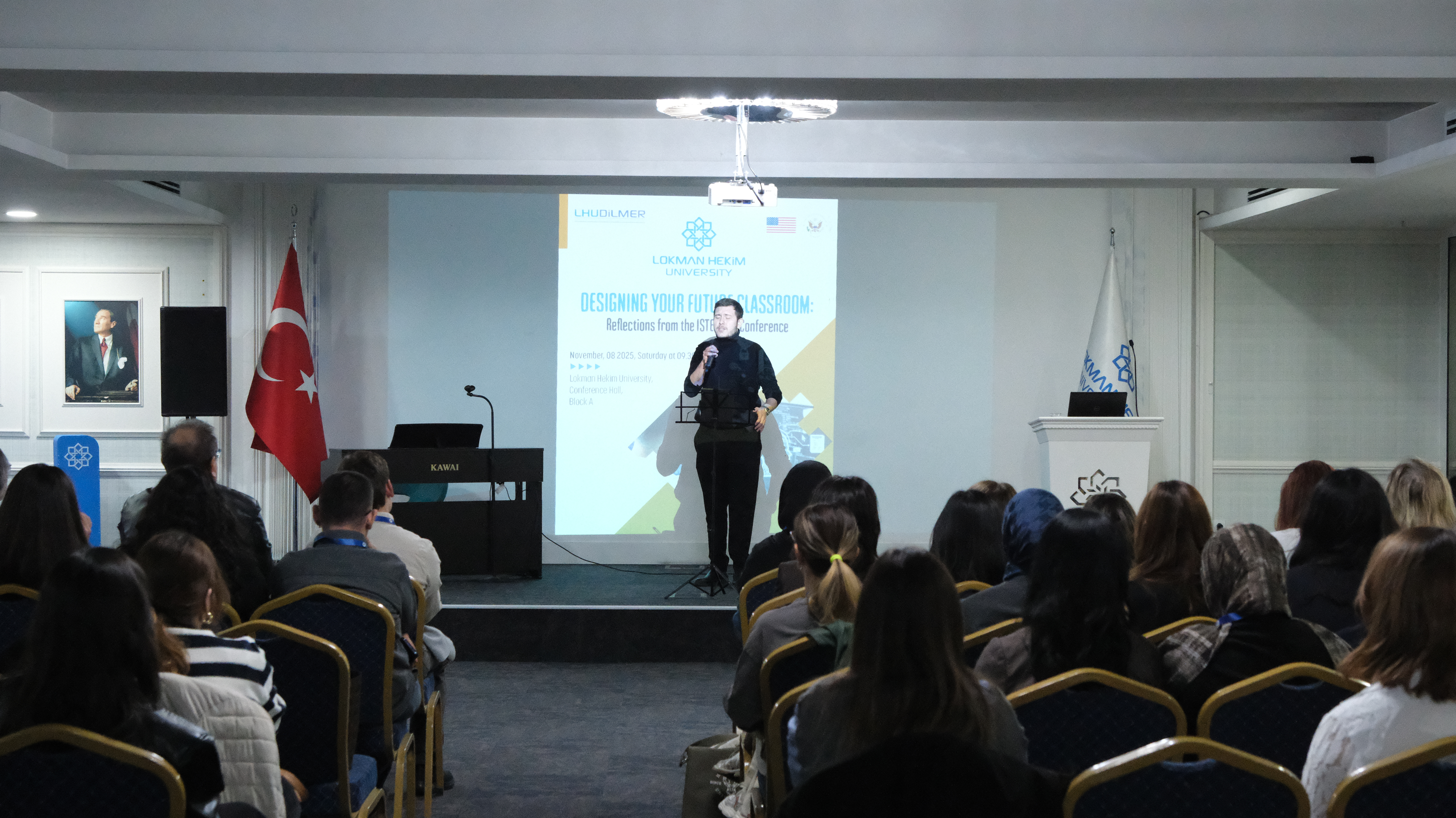 08 Kasım 2025 tarihinde “Designing Your Future Classroom: Reflections from the ISTE 2025 Conference” başlıklı konferans Lokman Hekim Üniversitesi Dil Öğretim Uygulama ve Araştırma Merkezi (DİLMER) tarafından DİLMER müdürü Dr. Öğr. Üyesi Gohar SEYEDİ direktörlüğünde ve ABD Büyükelçiliği Regional English Language Office (RELO)'nın sponsorluğunda düzenlendi.