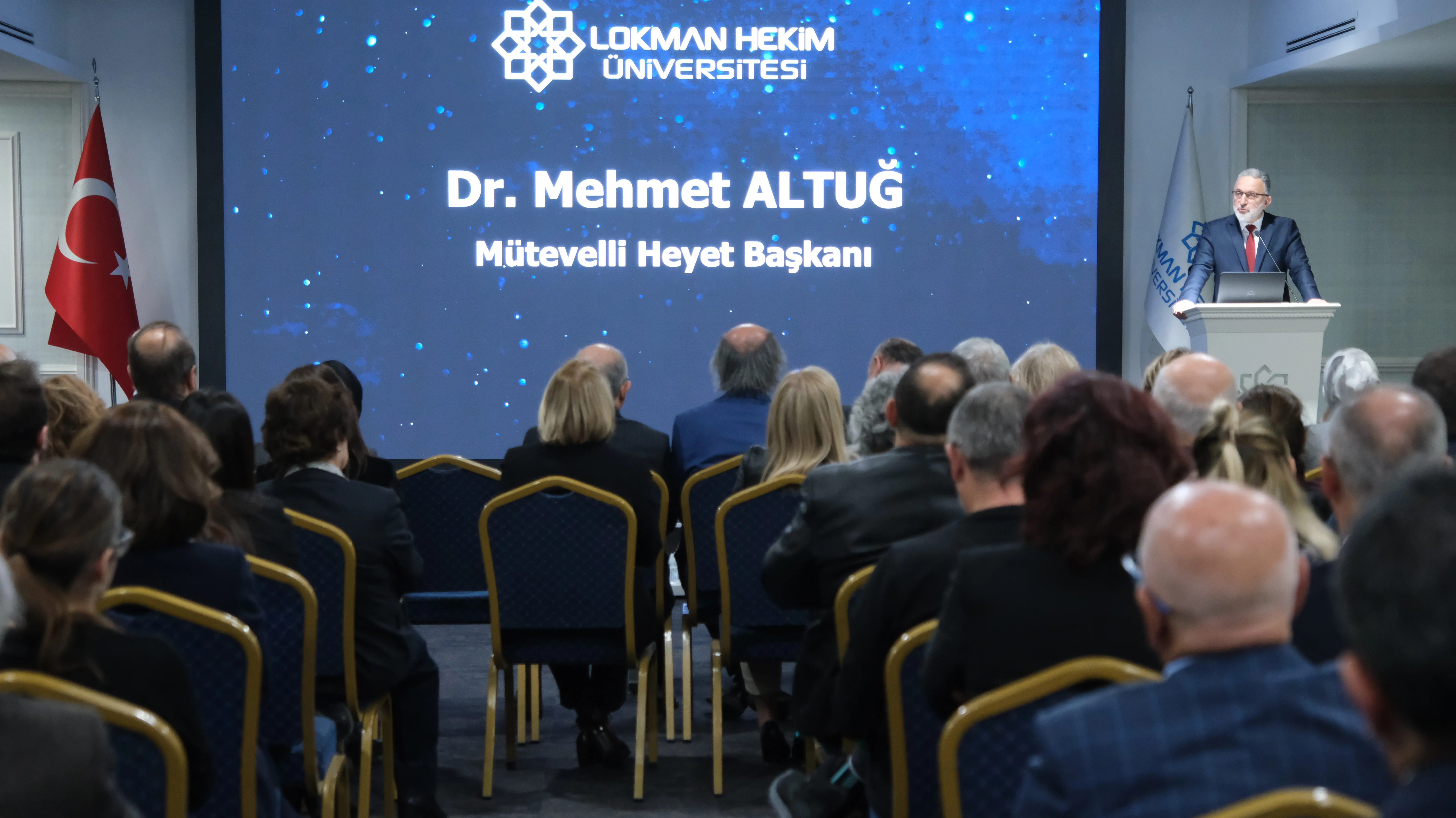 Açılış konuşmasında Dr. Mehmet ALTUĞ, üniversitenin sekiz yıllık serüveninin yalnızca bir zaman dilimiyle ifade edilemeyeceğini vurguladı. Lokman Hekim Üniversitesi’nin, geçmişin ilmî ve irfanî birikimi ile çağdaş bilimsel gelişmeleri bir araya getirme hedefiyle yol aldığını belirten ALTUĞ, bu sürecin tüm paydaşların emeğiyle şekillendiğini ifade etti.