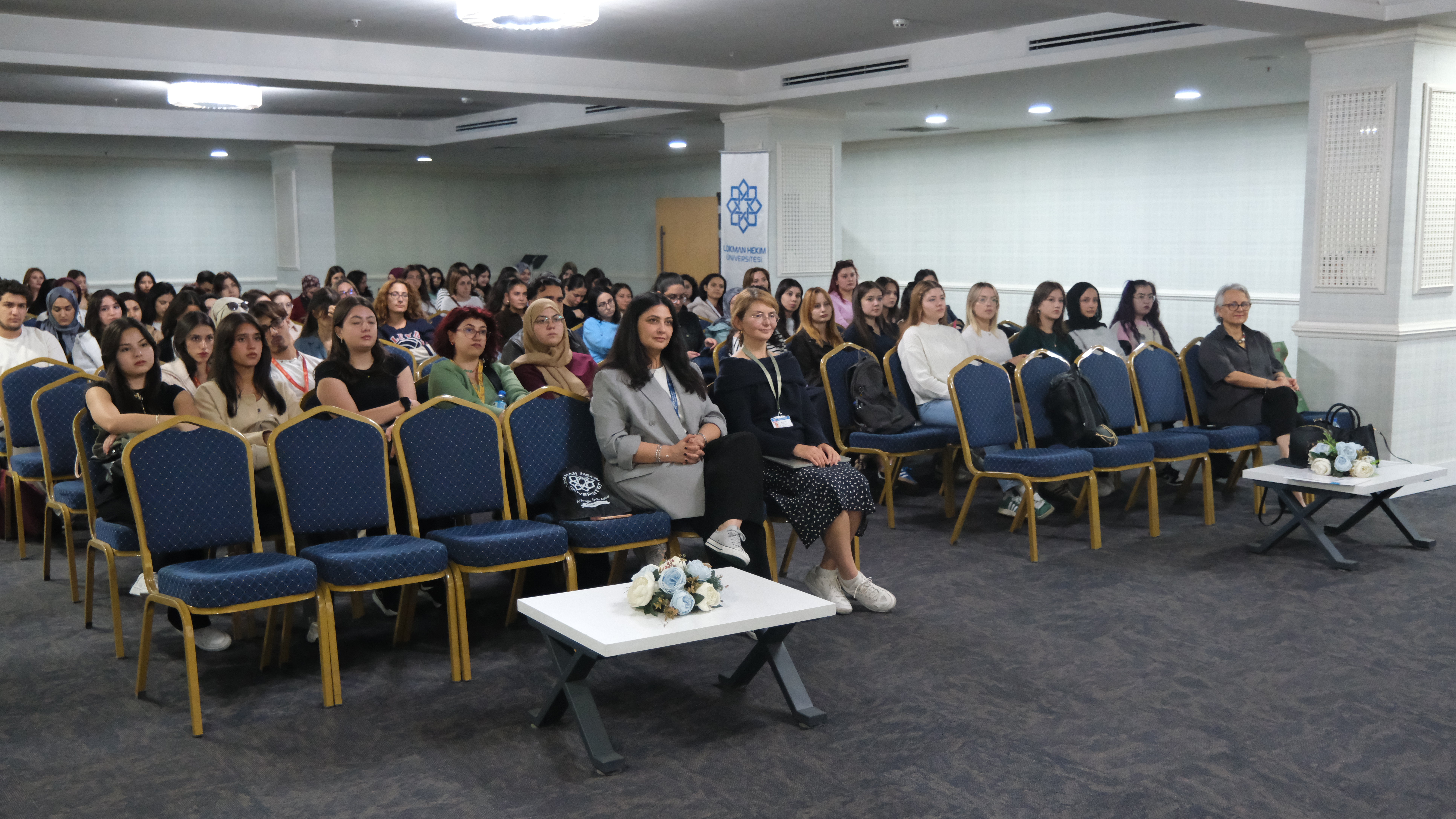 Lokman Hekim Üniversitesi Sağlık Bilimleri Fakültesi, öğrencilerini uluslararası kariyer olanaklarıyla buluşturmaya devam ediyor. 7 Ekim 2025 Salı günü düzenlenen “Almanya’daki Kariyer Olanakları” başlıklı etkinlikte, Almanya’da yaşayan Siyaset Bilimci ve Eğitmen Öznur ÖZCAN, sağlık alanında yurt dışı istihdam fırsatları hakkında öğrencilerle değerli bilgiler paylaştı.