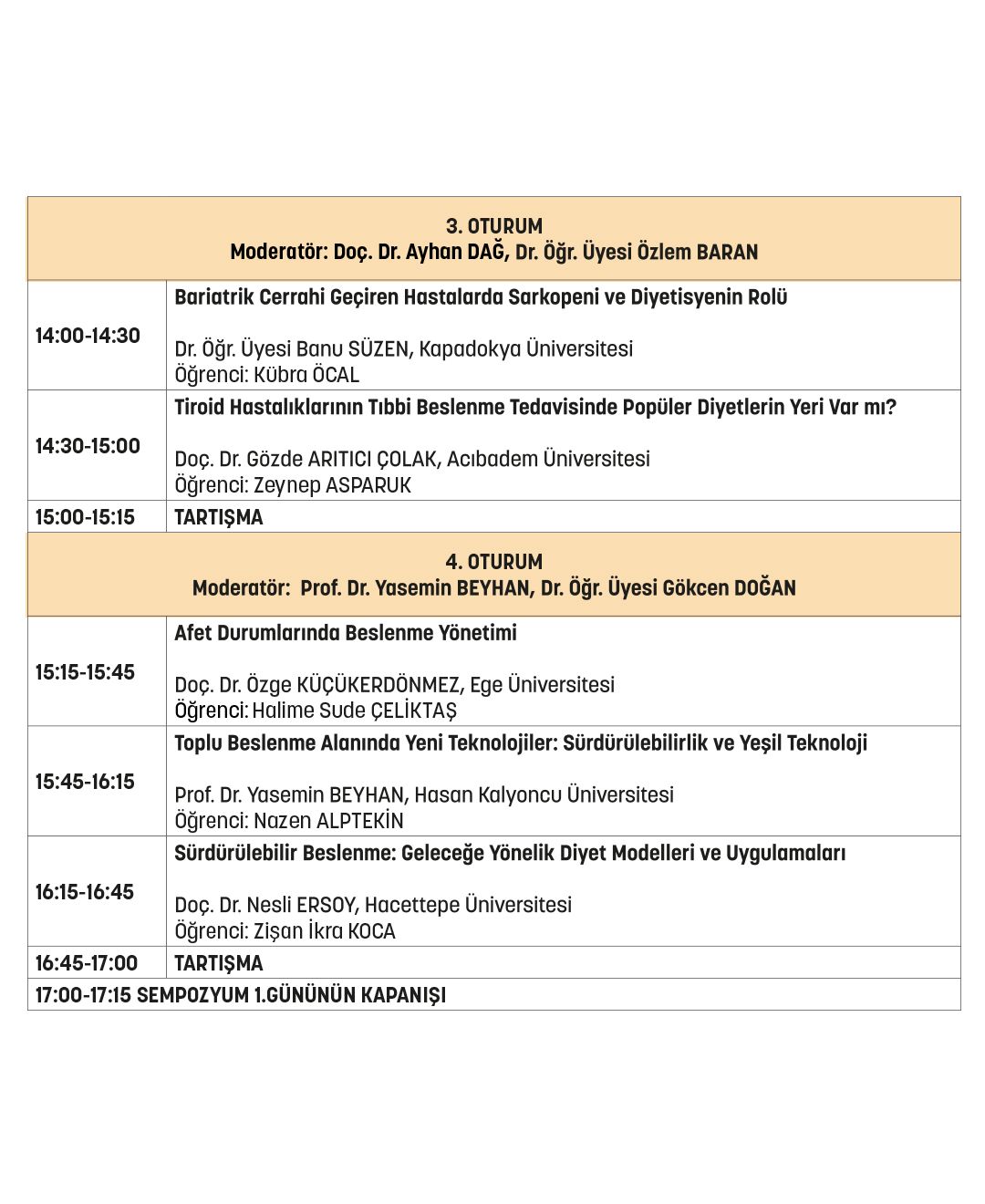 İki gün sürecek sempozyum, Prof. Dr. Ayla Gülden PEKCAN, Prof. Dr. Nilgün BEK, Prof. Dr. Fatih GÜLTEKİN ve Dr. Mehmet ALTUĞ’un açılış konuşmalarıyla başlayacak. Program, uzun yaşamda polifenollerin rolünden, diyetisyenlikte etik sorumluluklara, dijital diyet uygulamalarından malnütrisyon taramasına, sürdürülebilir beslenme yaklaşımlarından, okul beslenmesi ve ebeveyn davranışlarının etkilerine kadar geniş bir yelpazede oturumlar içeriyor.