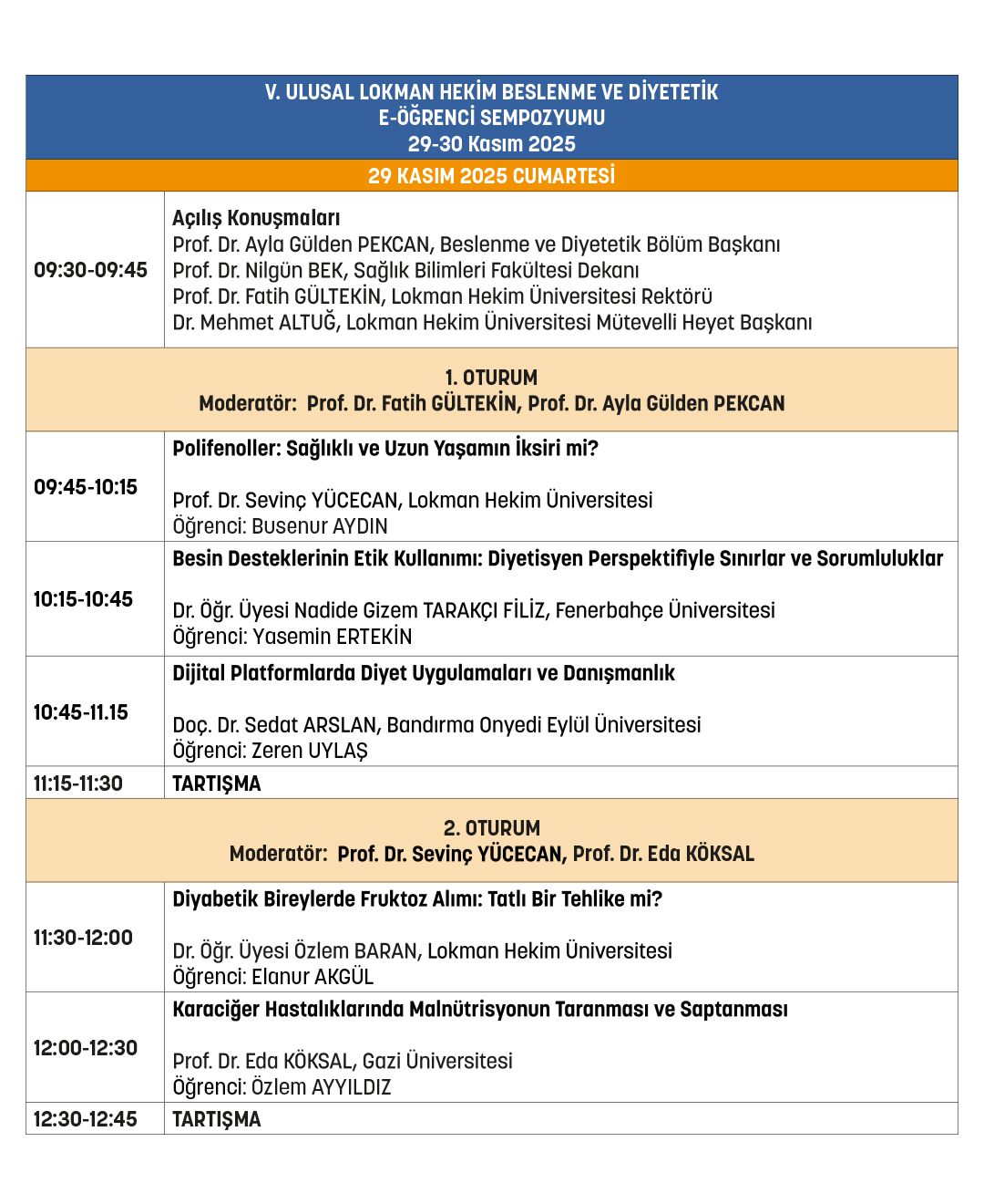 V. Ulusal Lokman Hekim Beslenme ve Diyetetik E-Öğrenci Sempozyumu