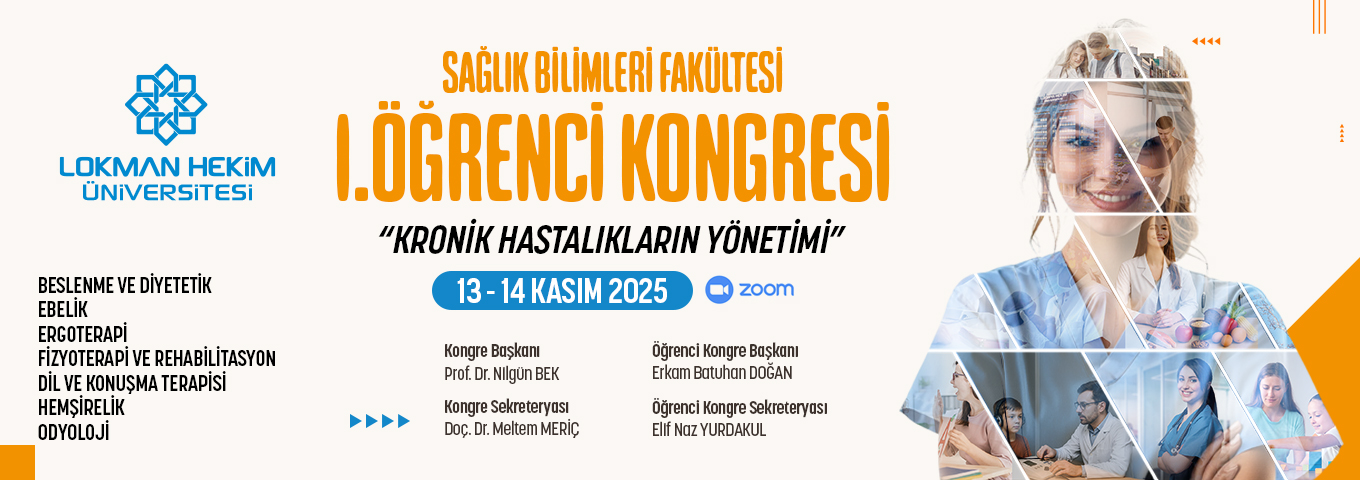 Lokman Hekim Üniversitesi’nde 13-14 Kasım 2025 tarihlerinde gerçekleştireceğimiz “Sağlık Bilimleri Fakültesi 1. Öğrenci Kongresi”ni sizlere duyurmanın ve davet etmenin sevincini ve heyecanını yaşıyoruz. Kongremizin Ana Teması “Kronik Hastalıkların Yönetimi” olarak belirlenmiştir.