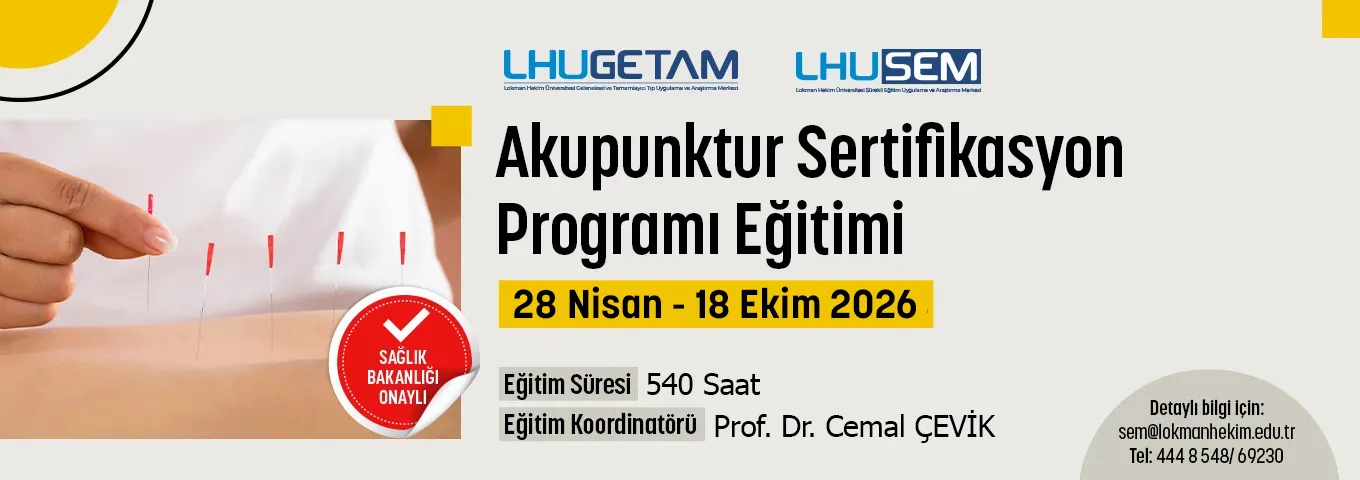 Sürekli Eğitim Merkezi ve Geleneksel ve Tamamlayıcı Tıp Uygulama ve Araştırma Merkezi iş birliği ile 28 Nisan - 22 Kasım 2026 tarihleri arasında Sağlık Bakanlığı Onaylı Akupunktur Sertifikasyon Programı Eğitimi gerçekleştirilecektir.