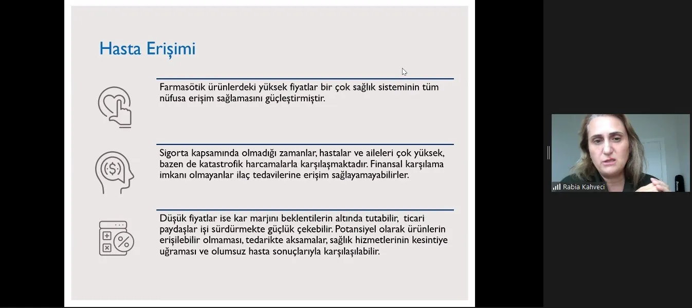 | 10.00-13.30 | İnteraktif Grup Çalışması – İlaçta Pazara Erişim Süreci – İlaçta Perakende Satış Fiyatı ve Fiyat Başvuruları – İlaçta Kamu Fiyatı Belirlenmesi Süreçleri – İlaçta Geri Ödeme Başvuruları – İlaca Erişim ve Genel Değerlendirme | Doç. Dr. Rabia KAHVECİ Doç. Dr. İsmail Mert VURAL 10.00 – 13.00 |