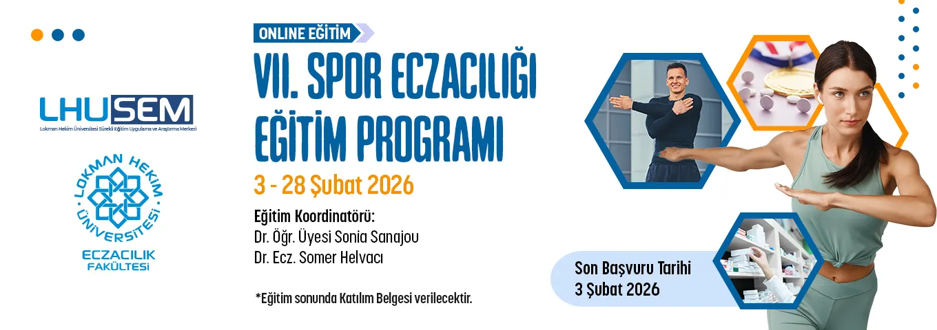 Lokman Hekim Üniversitesi Eczacılık Fakültesi ve Lokman Hekim Sürekli Eğitim Merkezi iş birliği ile 3 Şubat- 28 Şubat 2026 tarihleri arasında online olarak düzenlenecek olan VII. Spor Eczacılığı Eğitim Programı’nda eczacılık uygulamalarının sporcu sağlığı alanındaki etkin rolü hakkında detaylı bilgiler aktarılacaktır. Eğitim programı son başvuru tarihi 3 Şubat 2026 olarak belirlenmiştir.
