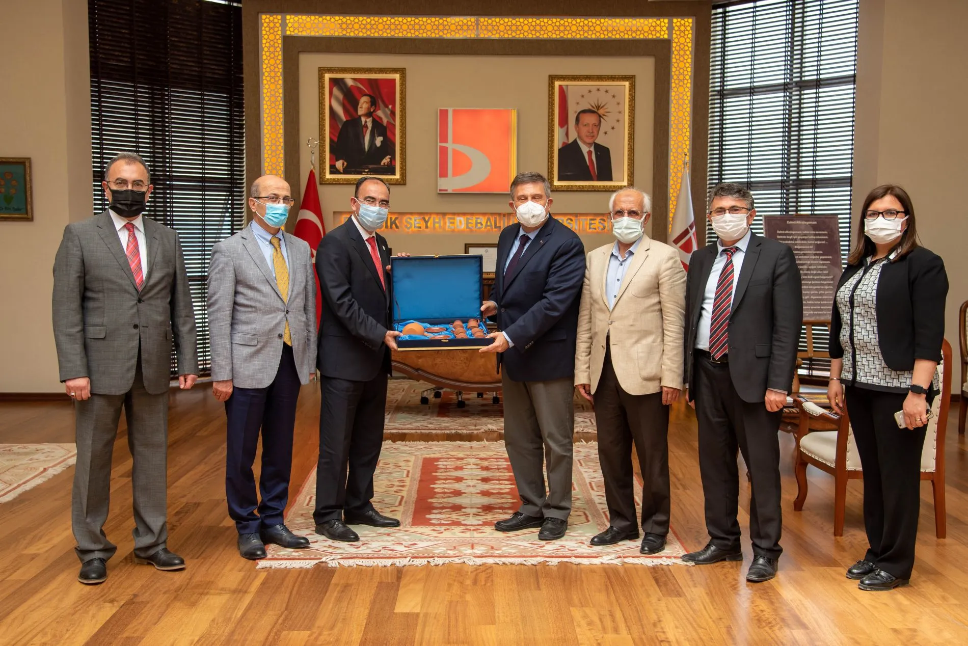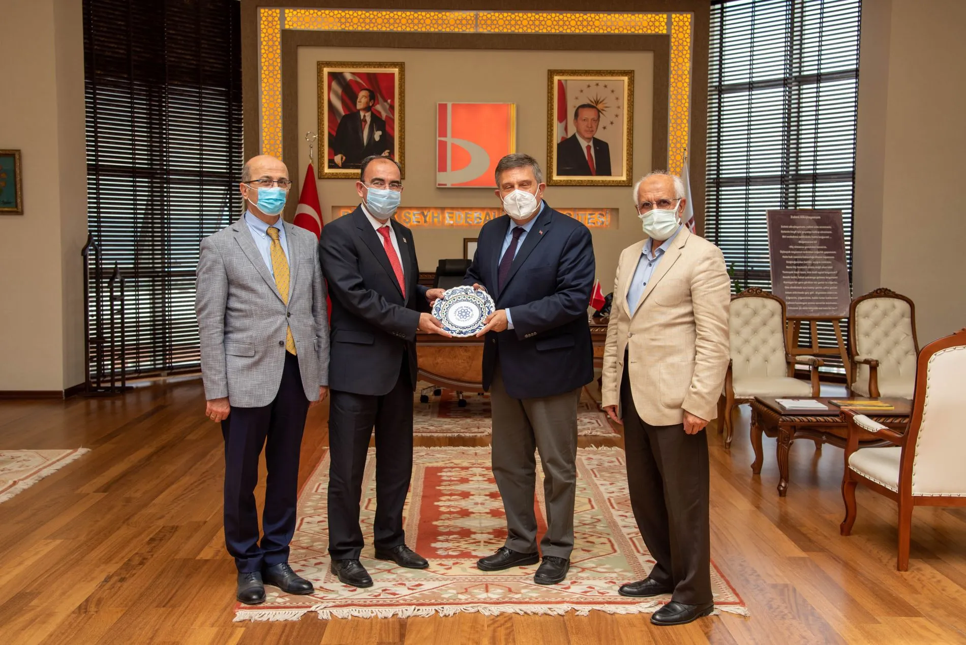 Bilecik Şeyh Edebali Üniversitesi Rektörü Prof. Dr. Şükrü Beydemir'in daveti üzerinde üniversitemiz Rektörü Bülent Gümüşel, Rektör Yardımcısı Prof. Dr. Metin Yıldırımkaya, Tıp Fakültesi Dekanı Prof. Dr. Mehmet Doğanay, Tıp Fakültesi Prof. Dr. Muhammet Güven, ve Genel Sekreter Prof. Dr. İsmet Şahin Tıp Fakültesi morfoloji binasının teknik donanım ihtiyacının değerlendirilmesi toplantısına katıldı.