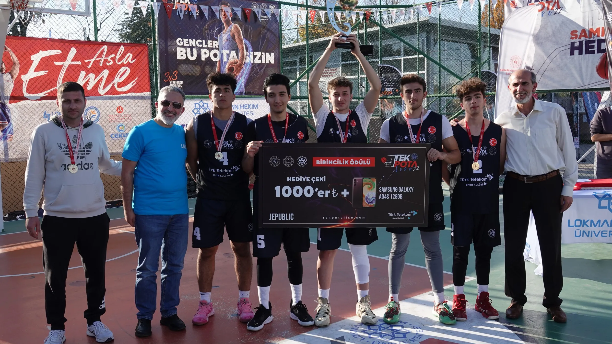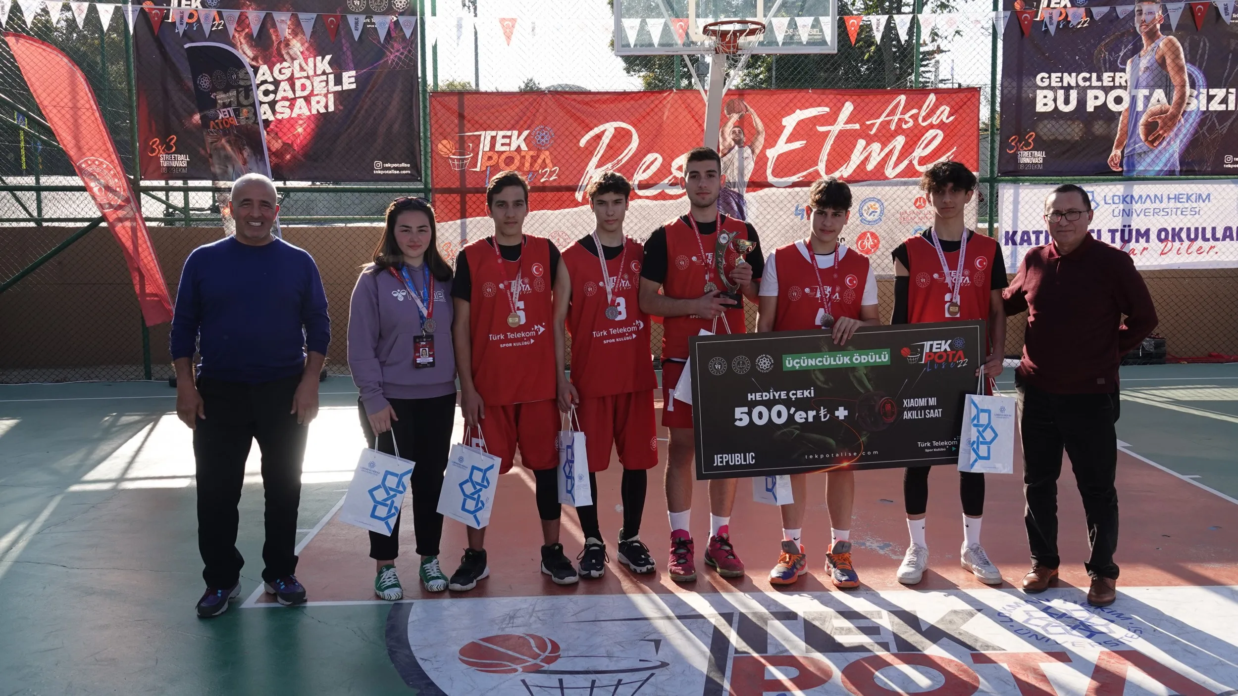 Lokman Hekim Üniversitesi’nin üstlendiği ve 2. Kez Düzenlenen Tek Pota Lise Turnuvası’nın final mücadelesi bugün gerçekleştirildi. Ankara Anıttepe Spor Tesislerinde gerçekleştirilen mücadelede finale yükselen 8 takım kıran kırana mücadele etti. Tek Pota Lise Turnuvası’nın şampiyonu İpucu Koleji olurken Anıttepe Anadolu Lisesi ikinciliği, Aziziye Anadolu Lisesi ise üçüncülüğü elde etti. Final mücadelesi maç aralarında gerçekleştirilen smaç ve 3’lük yarışmasını kazanan öğrenciler hediyeleri ile buluştu. Geçtiğimiz yıl atılan her basketin bir fidana dönüştüğü turnuvada 2151 adet fidan toprak ile buluşurken bu yıl turnuvaya katılan okulların hediye ettiği kitaplar ile oluşturulan Tek Pota Lise Kitap Kumbarasında yer alan 1060 adet kitap, Ankara Sincan Tuna Üçer İlkokulu’nda Tek Pota Lise Kütüphanesi ile yerini bulacak. Mücadeleyi desteklemek için Lokman Hekim Üniversitesi Mütevelli Heyet Başkanı Dr. Mehmet ALTUĞ, Rektör Prof. Dr. Fatih GÜLTEKİN, Sevgi Vakfı Üyesi Osman TEKİN, LHÜ Spor Kulübü Yönetim Kurulu Üyesi Mehmet ALDANMAZ, Rektör Yardımcıları ve akademisyenlerinin yanı sıra, Ankara Gençlik ve Spor İl Müdürü Mustafa ÇELİK ve çok sayıda davetli yer aldı. Final mücadelesini birincilik ile tamamlayıp şampiyonluğa hak kazanan İpucu Koleji’ne ödüllerini LHÜ Mütevelli Heyet Başkanı Dr. Mehmet ALTUĞ ve Rektör Prof. Dr. Fatih GÜLTKİN takdim etti. Turnuvada ikincilik ile tamamlayan Anıttepe Lisesi öğrencilerine ödüllerini Ankara Gençlik ve Spor İl Müdürü Mustafa ÇELİK takdim ederken turnuvayı üçüncü sırada tamamlayan Aziziye Anadolu Lisesi öğrencilerine ödüllerini Sevgi Vakfı Üyesi Osman Tekin ve LHÜ Spor Bilimleri Fakültesi Dekanı Prof. Dr. Settar KOÇAK takdim etti. Turnuvada smaç ve 3’lük yarışmalarını kazanan öğrencilere ödüllerini LHÜ Rektörü Prof. Dr. Fatih GÜLTEKİN, LHÜ Rektör Yardımcısı Prof. Dr. İsmet ŞAHİN, LHÜ Spor Kulübü Yönetim Kurulu Üyesi Mehmet ALDANMAZ ve Jepublic Sahibi Usame GÖKÇEK takdim etti. LHÜ Mütevelli Heyet Başkanı Dr. Mehmet ALTUĞ, LHÜ Spor Kulübü Yönetim Kurulu Üyesi Mehmet ALDANMAZ ve Ankara Gençlik ve Spor İl Müdürü Mustafa ÇELİK ikinci defa düzenlenen mücadeleye katılan tüm takımlara teşekkür ederken, bu turnuvanın tüm Türkiye genelinde yapılmasını ve 2023 Tek Pota Lise Turnuvası’nda görüşmek temennilerinde bulundu. Turnuvaya katılan tüm öğrencilere ve sponsorlarımız Lokman Hekim Sağlık Grubu, Türk Telekom Spor Kulübü, Atatürk Orman Çiftliği, Hasan Usta Kebap ve Jepublic’e teşekkür ediyoruz.