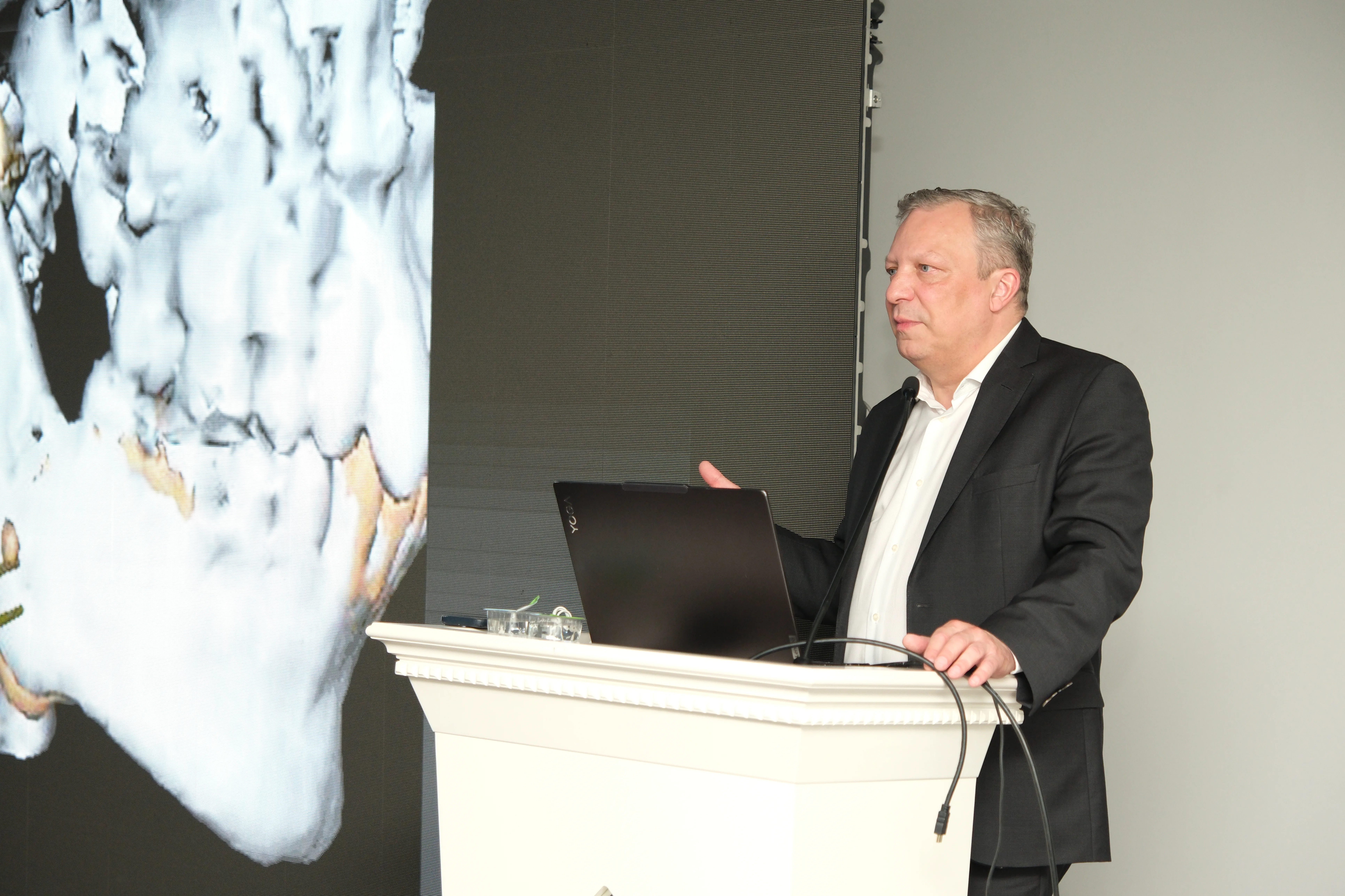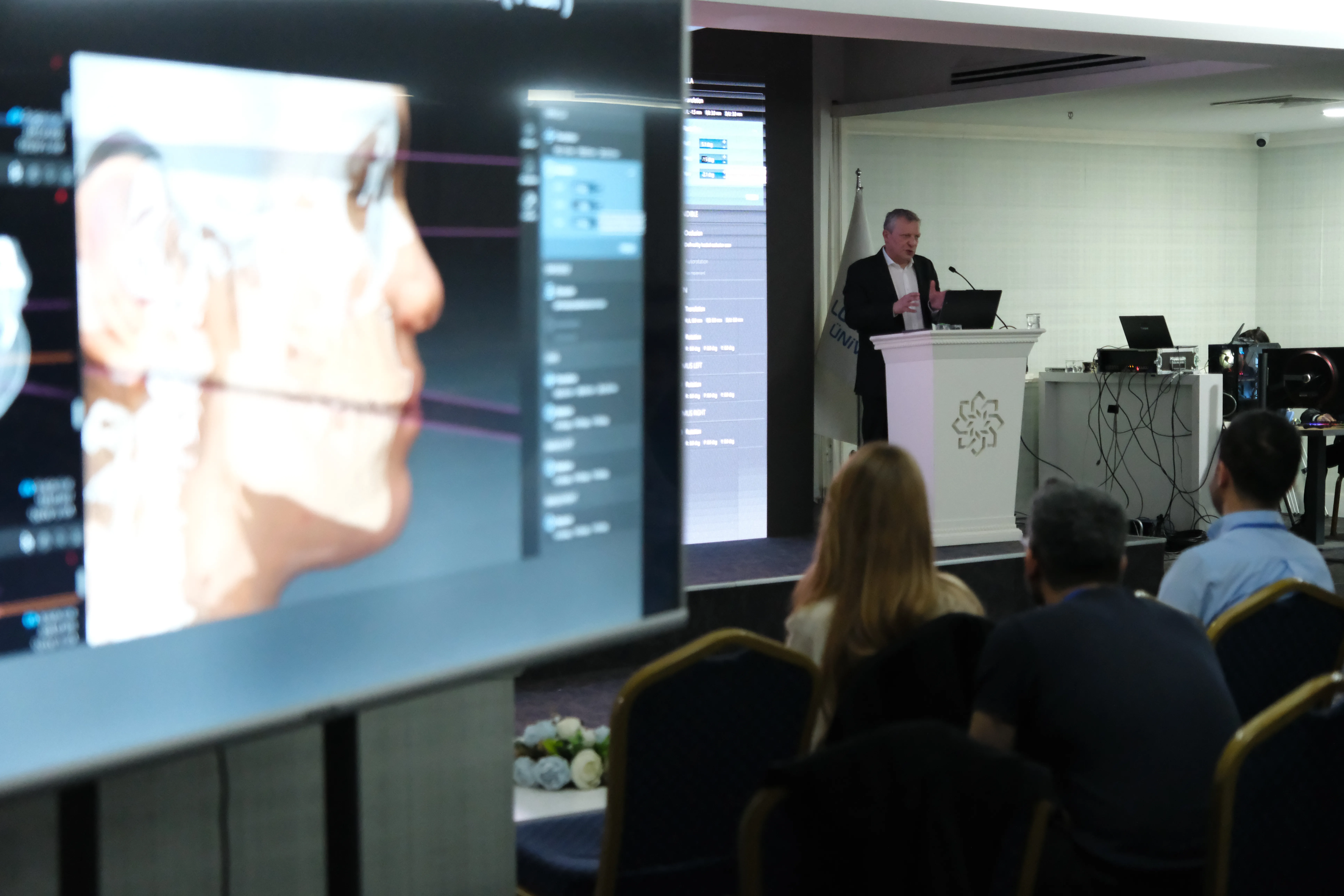 İkinci gün, sanal cerrahi planlama odaklı oturumlarla devam etti. Açılış konuşmalarının ardından, sanal cerrahi konsepti, 3 boyutlu iş akışları ve teşhis süreçleri detaylandırıldı. Doğal baş pozisyonunun belirlenmesi, tedavi planlamaları ve sanal cerrahi süreçlerinin vaka analizleri eşliğinde değerlendirilmesi, katılımcıların güncel yöntemler hakkında kapsamlı bilgi edinmesini sağladı. Öğleden sonraki oturumlarda, maksilla ve mandibula cerrahileri arasındaki öncelik sıralaması tartışıldı ve sanal cerrahi planların aktarımı gerçekleştirildi.