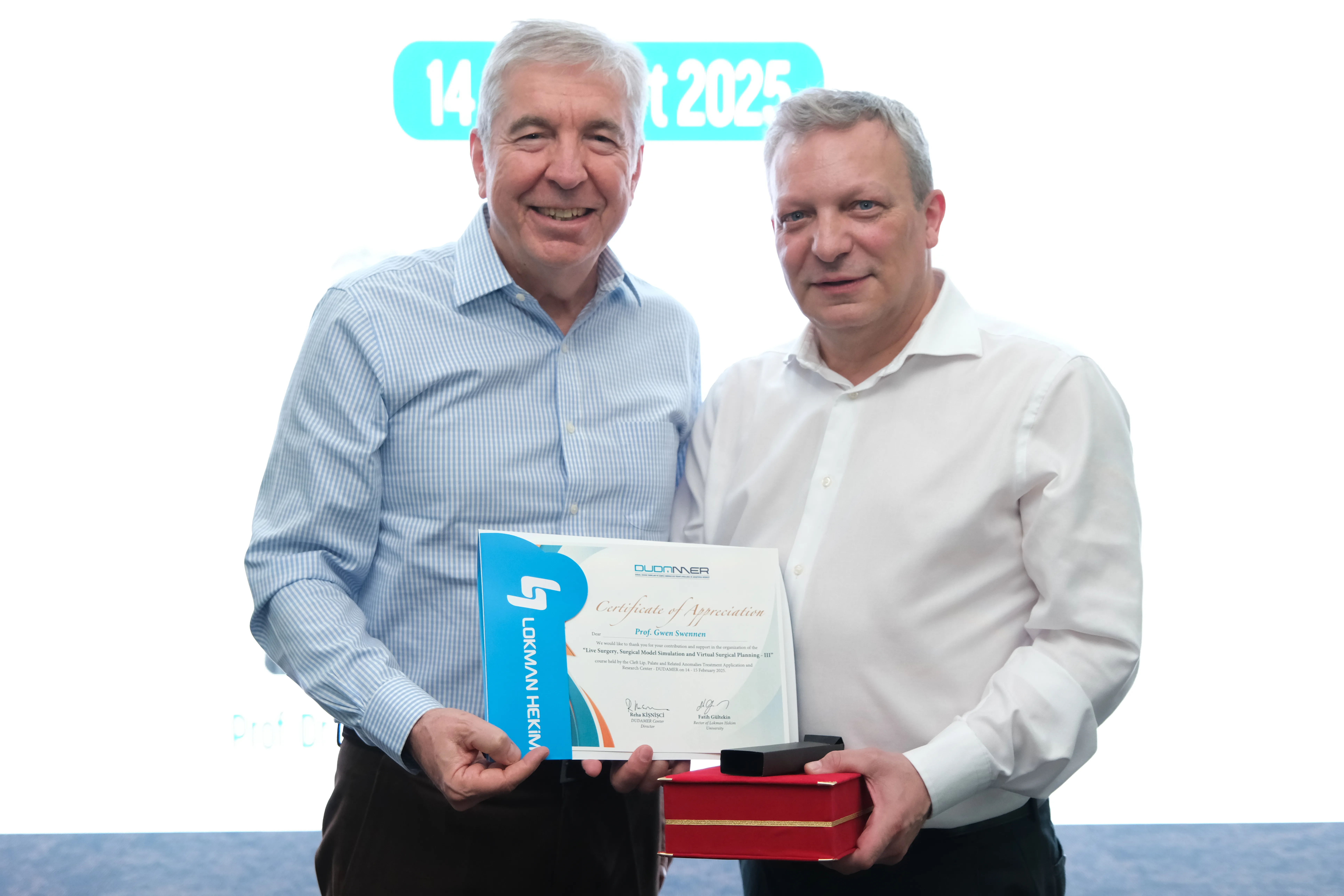 Eğitim programının kapanışında, Lokman Hekim Üniversitesi’nden Prof. Dr. Reha KİŞNİŞÇİ, kursa katkılarından dolayı Prof. Dr. Gwen SWENNEN’e teşekkür plaketi ve onur belgesi takdim etti. Ayrıca, program süresince katılım gösteren sağlık profesyonelleri ve organizasyonda emeği geçenler de unutulmadı; kendilerine katılım ve teşekkür belgeleri sunuldu.