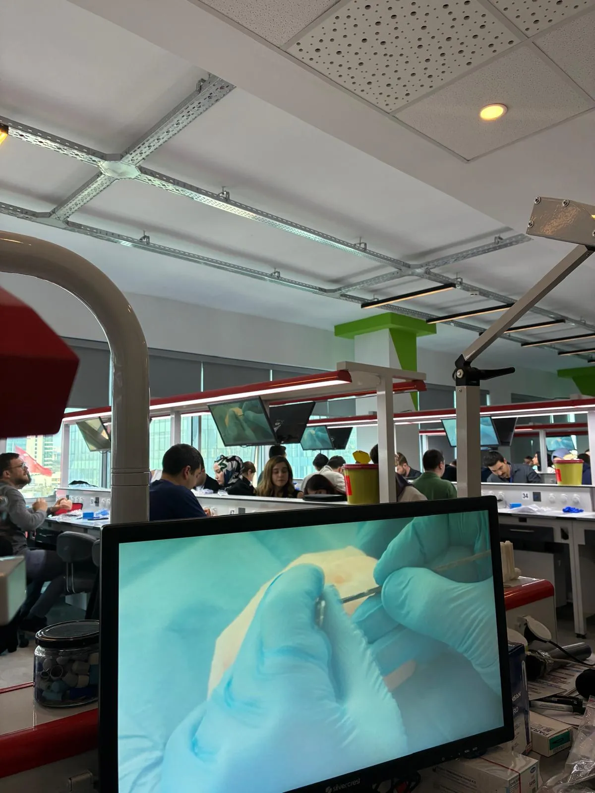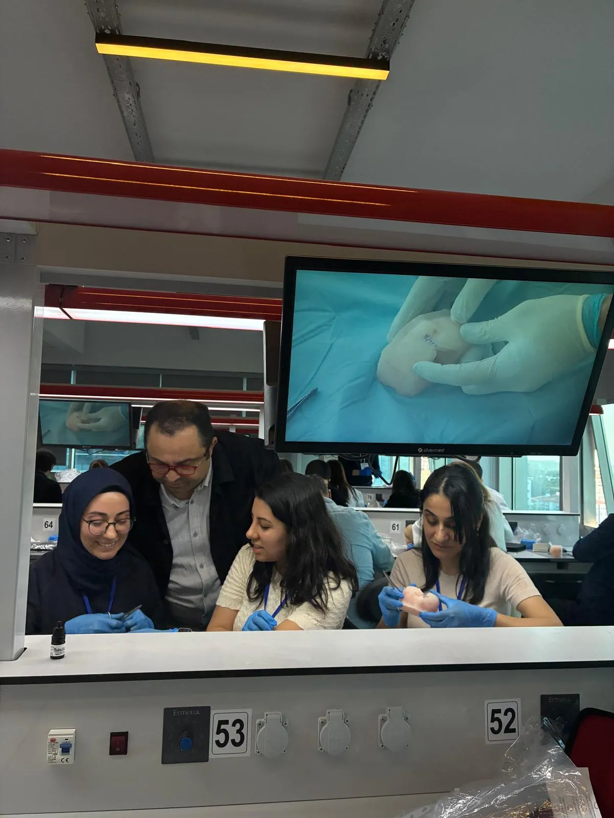 İki gün süren program, ağız, çene ve yüz cerrahisi alanındaki en yeni yöntemlerin interaktif uygulamalarla aktarılmasını hedefledi. Kursun ilk günü, ameliyathaneden canlı cerrahilerle başladı. Katılımcılar, Prof. Dr. Reha KİŞNİŞÇİ ve uzmanlarımızdan oluşan ameliyathane ekibi tarafından gerçekleştirilen operasyonları doğrudan izleme fırsatı bulurken, vaka bazlı analizlerle cerrahi süreçleri detaylı bir şekilde değerlendirdi. Günün ikinci bölümünde, cerrahi model simülasyon uygulamaları gerçekleştirildi. Teorik bilgilerin pratiğe dökülmesini sağlayan bu oturumda, katılımcılar simüle edilmiş vakalar üzerinde deneyim kazandı.