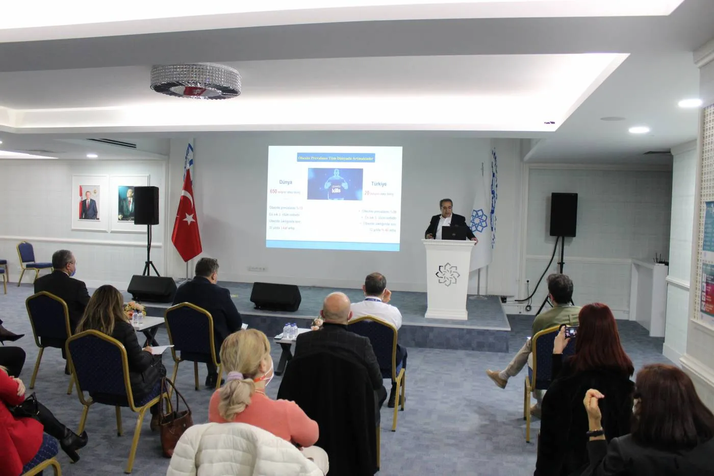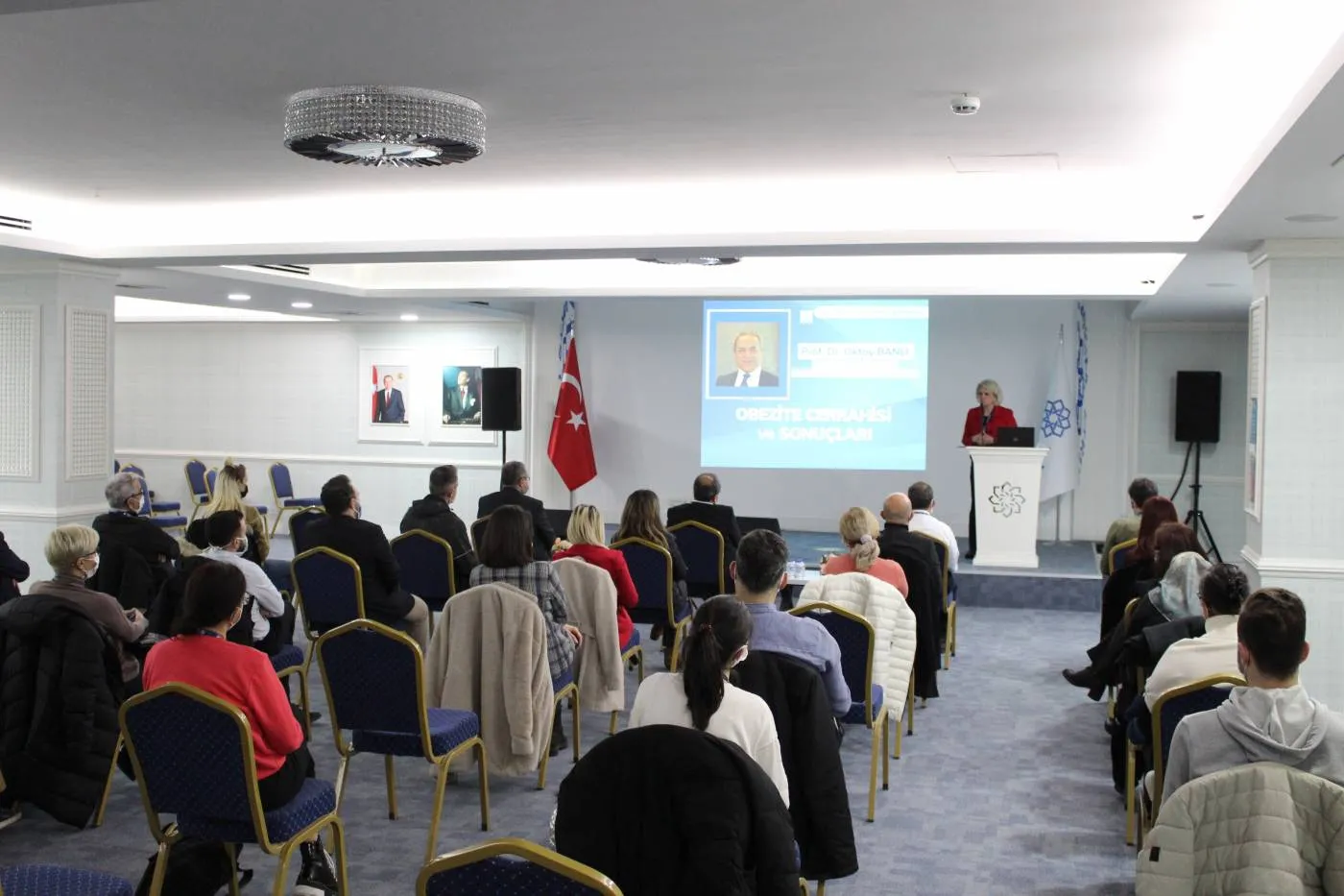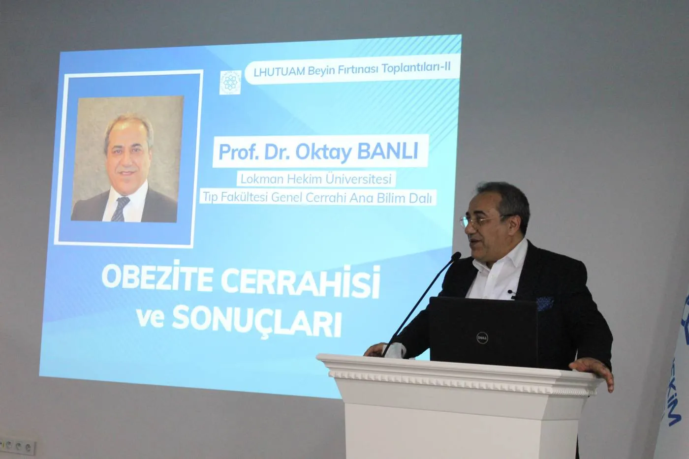 Lokman Hekim Üniversitesi Translasyonel Tıp Uygulama ve Araştırma Merkezi tarafından düzenlenen LHUTUAM Beyin Fırtınası Toplantılarının ikincisi LHÜ Tıp Fakültesi Genel Cerrahi Anabilim Dalı Öğretim Üyesi Prof. Dr. Oktay BANLI tarafından verilen Obezite Cerrahisi ve Sonuçları başlıklı konferans ile üniversitemiz -1. kat konferans salonunda gerçekleştirildi. Rektör Prof. Dr. Bülent GÜMÜŞEL ve akademisyenlerimizin katıldığı konferansta, LHUTUAM Müdürü Prof. Dr. Belma Gümüşel’in açılış konuşmasının ardından Prof. Dr. Oktay Banlı Obezite Cerrahisi, yapılan ameliyatlar, yöntemler ve sonuçları hakkında kapsamlı bir sunum yaptı. Ardından üniversitemizde obezite konusu ile çalışan ve bu konunun paydaşı olan farklı disiplinlerden akademisyenler ortak geliştirilebilecek projeler konusunda görüş alışverişinde bulundu.