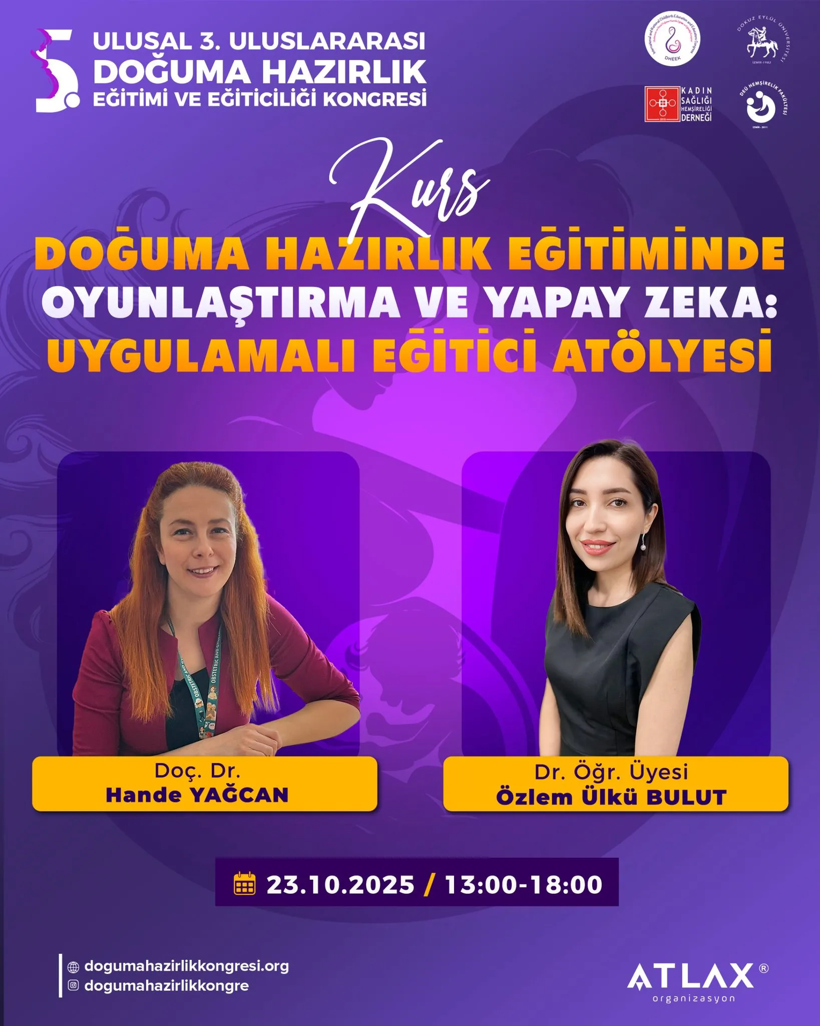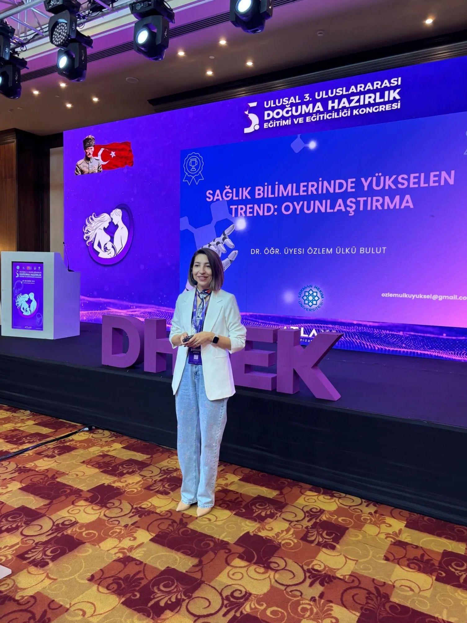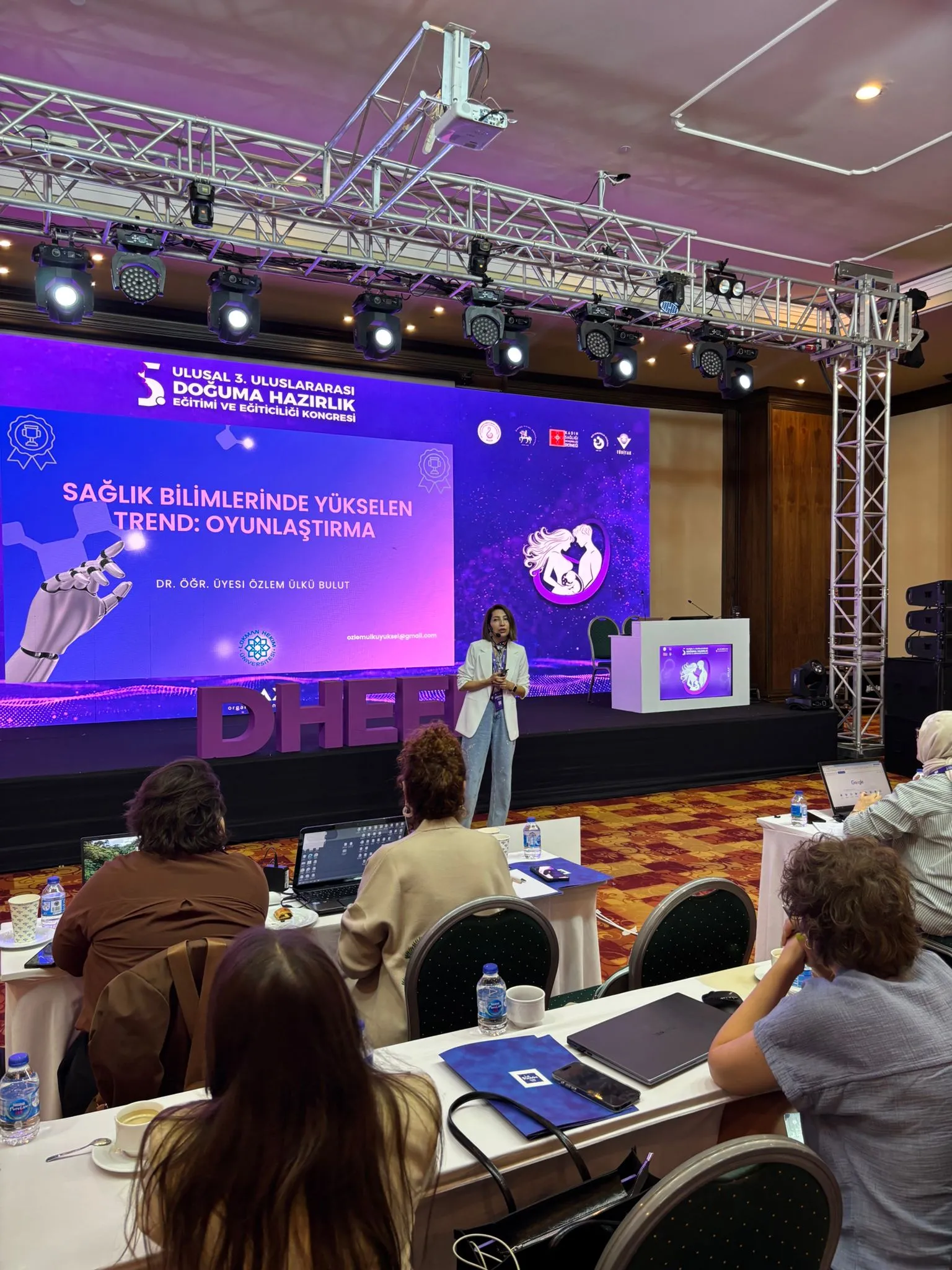 Dr. Öğr. Üyesi Özlem Ülkü BULUT, kongrede “Doğuma Hazırlıkta Oyunlaştırma” başlıklı konuşmasıyla davetli konuşmacı olarak yer aldı. Ayrıca “Doğuma Hazırlık Eğitiminde Oyunlaştırma ve Yapay Zekâ: Uygulamalı Eğitici Atölyesi” başlıklı kursu eğitici olarak yürüttü.