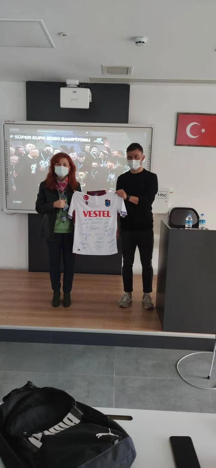 Trabzonspor Atletik Performans Teknik Direktörü Ekrem Özerk TUFAN üniversitemize gelerek Spor Bilimleri Fakültesi ögrencilerimizle bir araya geldi. Öğrencilere ''Profesyonel Futbolda Yüklenme Prensipleri ve Kuvvet Antrenmanları'' konusunu anlatarak imzalı formasını üniversitemize hediye eden Sayın TUFAN'a teşekkür ederiz.