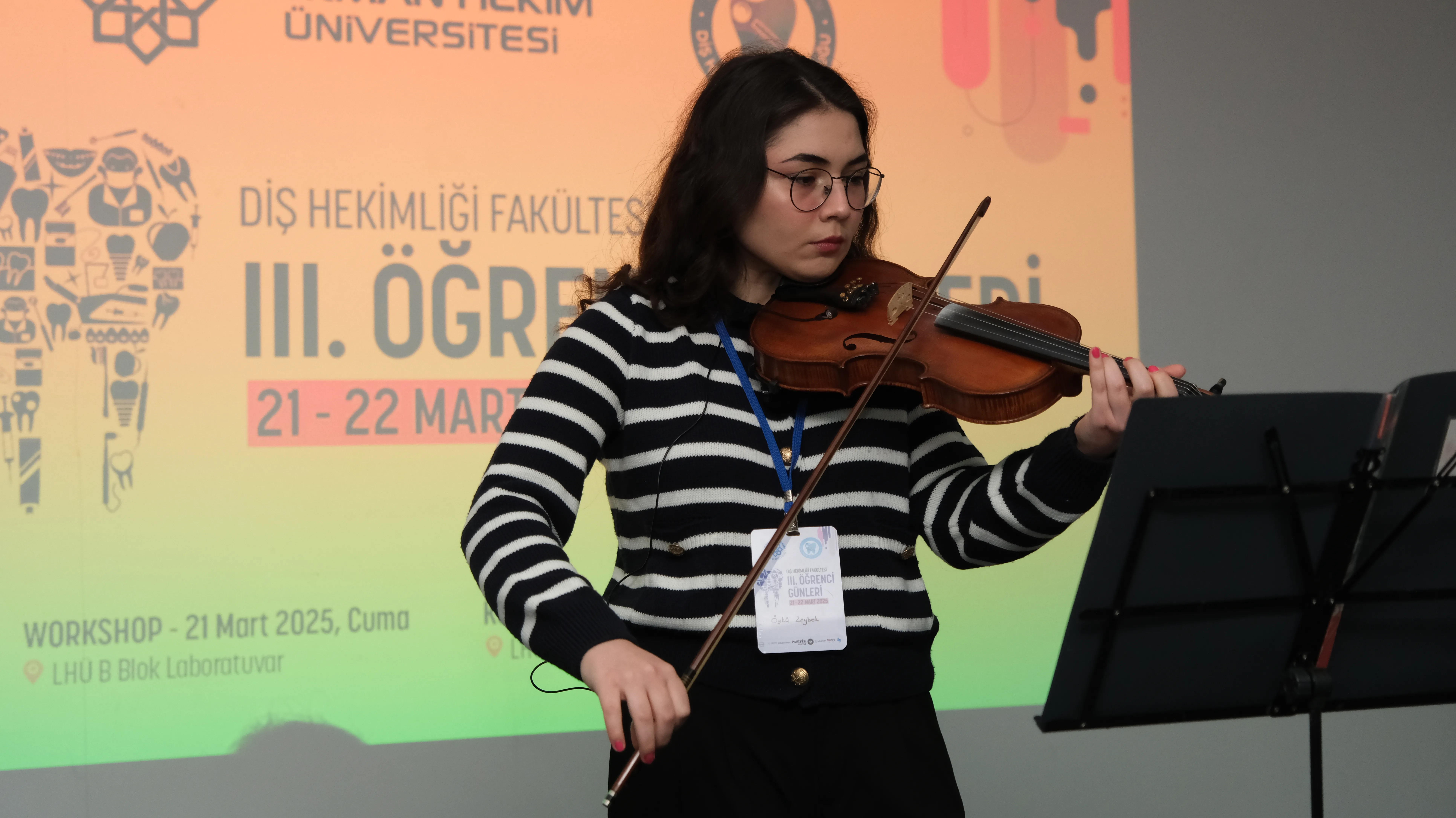 22 Mart 2025 Cumartesi günü sabah 2. sınıf öğrencimiz Öykü Zeybek'in müzik dinletisi ile başlayan program, açılış töreniyle devam etmiştir. Törende Diş Hekimliği Öğrenci Topluluğu Başkanı Yiğit Can Başoğlu, Fakülte Dekanımız Prof. Dr. Lale Karaağaçlıoğlu ve Rektörümüz Prof. Dr. Fatih Gültekin katılımcılara hitaben açılış konuşmalarını yapmışlardır. Ardından Prof. Dr. Reha Kişnişci "Ayırıcı Tanının Önemi: Temporomandibuler Eklem" konulu sunumuyla etkinliği başlatmış; sonrasında Dr. Dt. Tolga Yüksel "Klinikte Yanıltıcı Vakalar" başlıklı konuşmasıyla katılımcılara önemli klinik ipuçları sunmuştur. Öğle saatlerinde gerçekleştirilen poster sunumlarının ardından Dt. Güzin Kırsaçlıoğlu "Türkiye Ekonomisi ve Diş Hekimliği İşletmeciliği" üzerine bilgilendirici bir sunum yapmıştır. Günün son bilimsel oturumu ise Prof. Dr. Nilsun Bağış'ın "Dental Pratikte Botoks Kullanımı" başlıklı sunumuyla tamamlanmıştır.