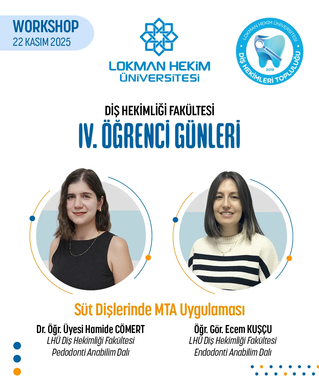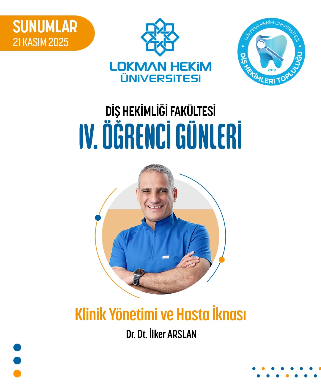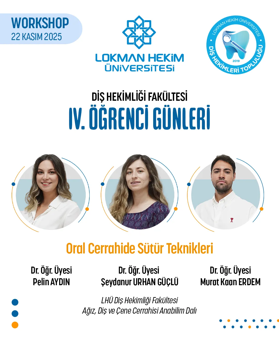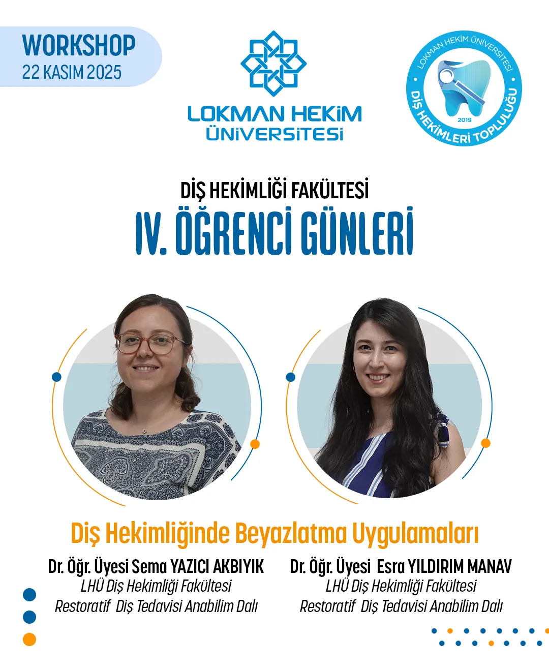 Lokman Hekim Üniversitesi Diş Hekimliği Fakültesi tarafından düzenlenen IV. Öğrenci Günleri, 21–22 Kasım 2025 tarihlerinde iki güne yayılan oturumlar ve atölyelerle gerçekleştirilecektir. Programın ilk günü teorik sunumlarla, ikinci günü ise klinik ve preklinik alanlarda uygulamalı çalışmalarla ilerleyecektir.