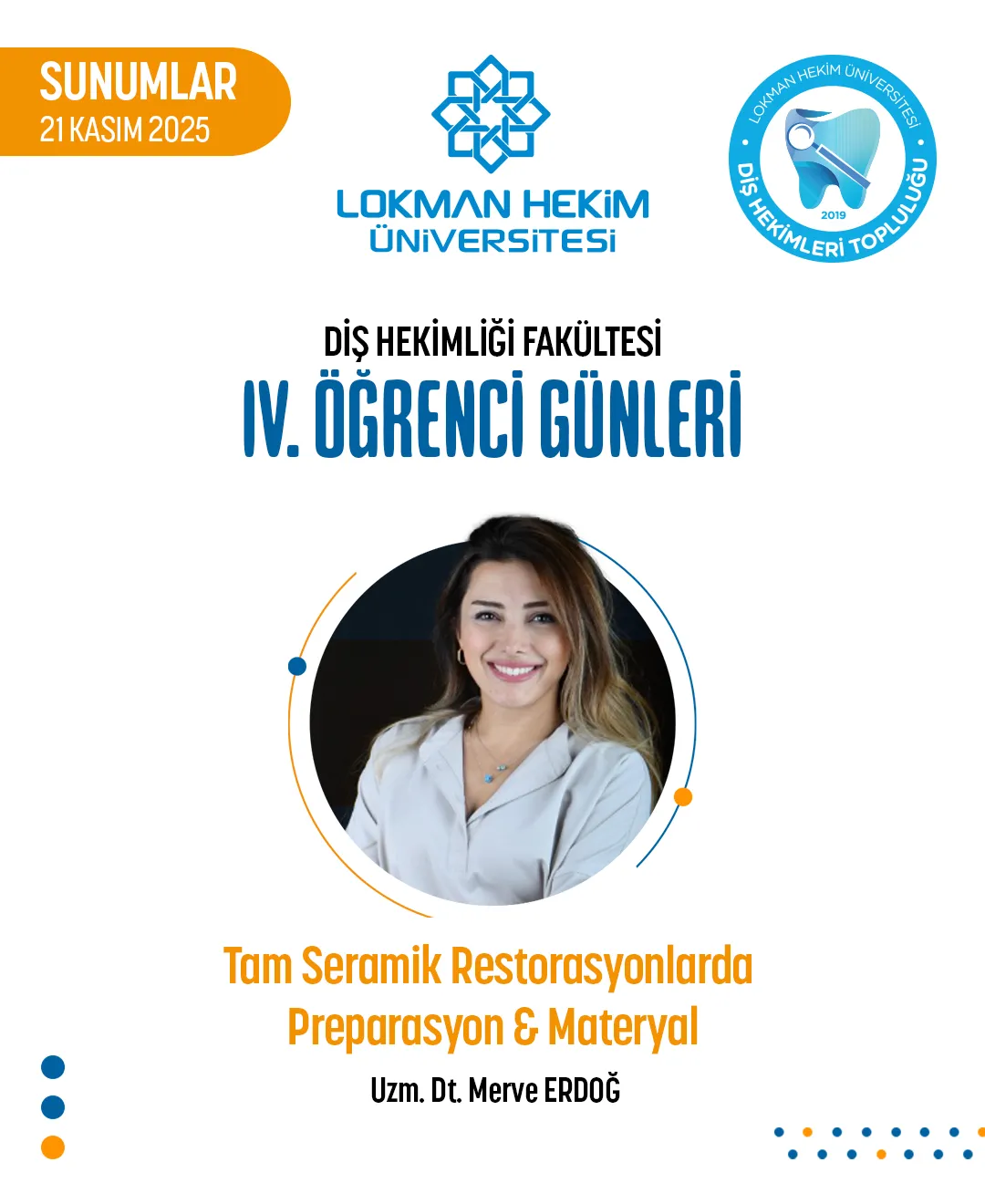 16.15–17.30: Uzm. Dt. Merve ERDOĞ – “Tam Seramik Restorasyonlarda Preparasyon & Materyal”