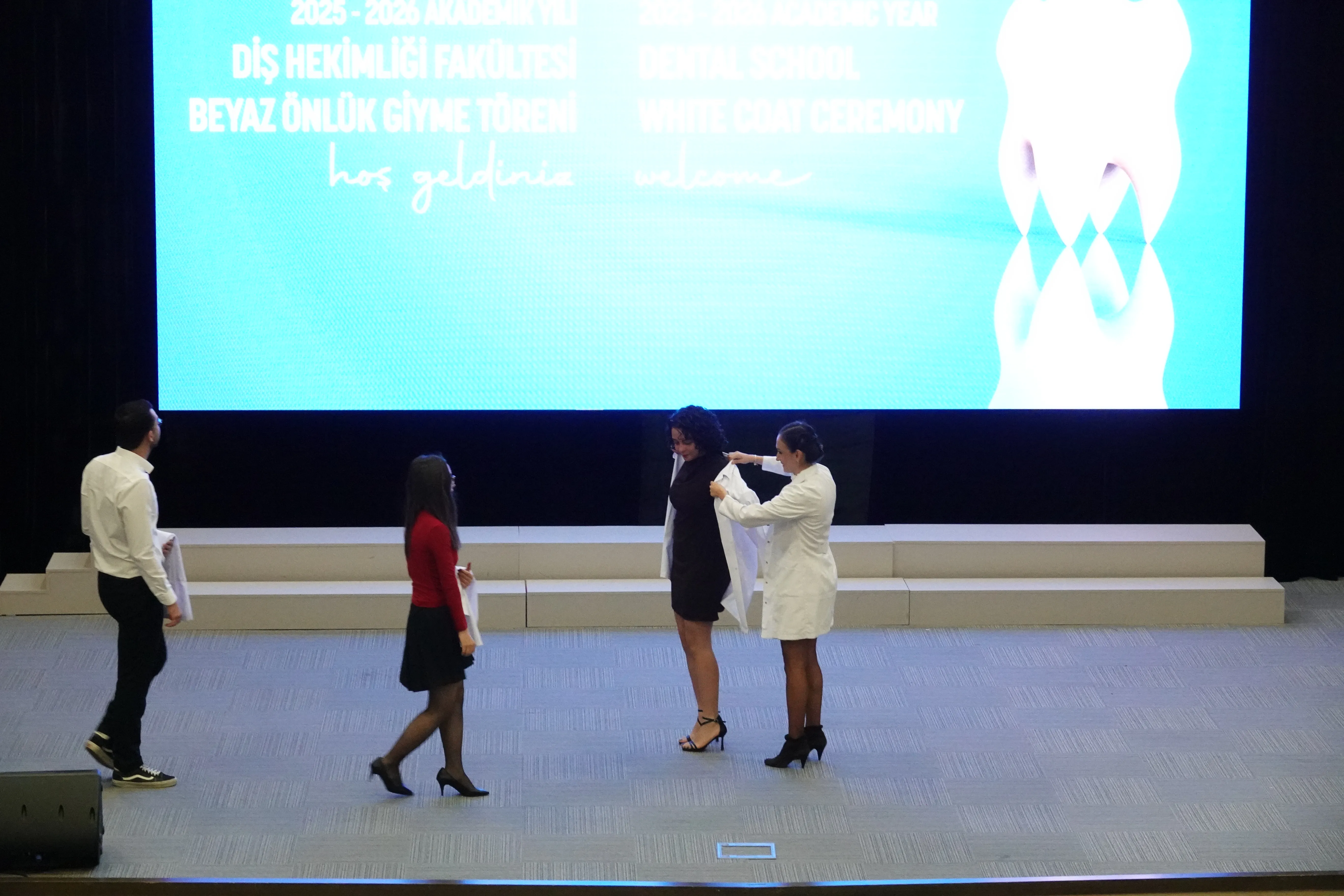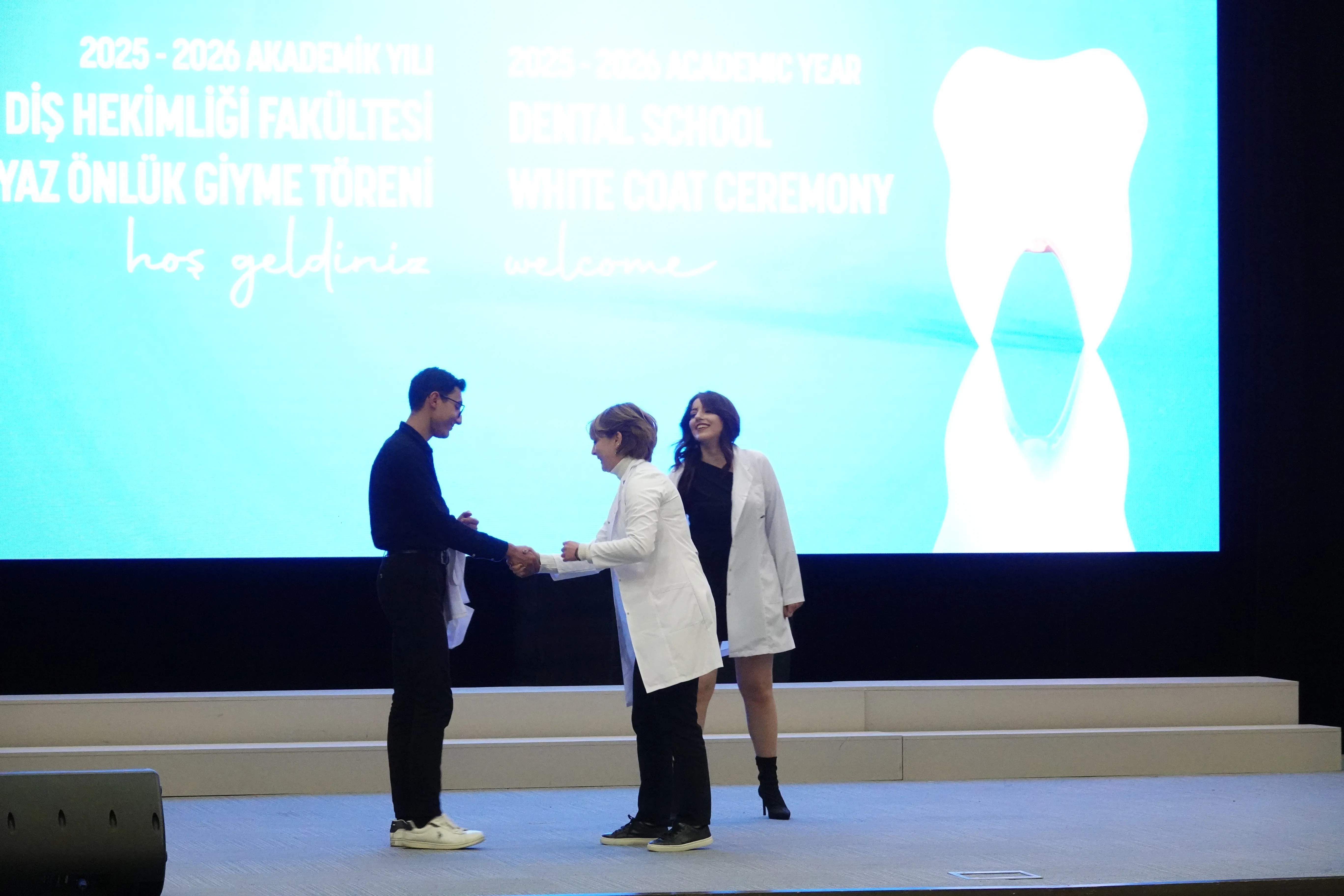 Öğrenciler, öğretim üyeleri eşliğinde beyaz önlüklerini giyerek klinik uygulama sürecine resmî olarak adım attı. Tören, öğrencilerin mesleki sorumluluklarını üstlendiklerini simgeleyen yemin bölümünün ardından toplu hatıra fotoğrafı çekimiyle tamamlandı.