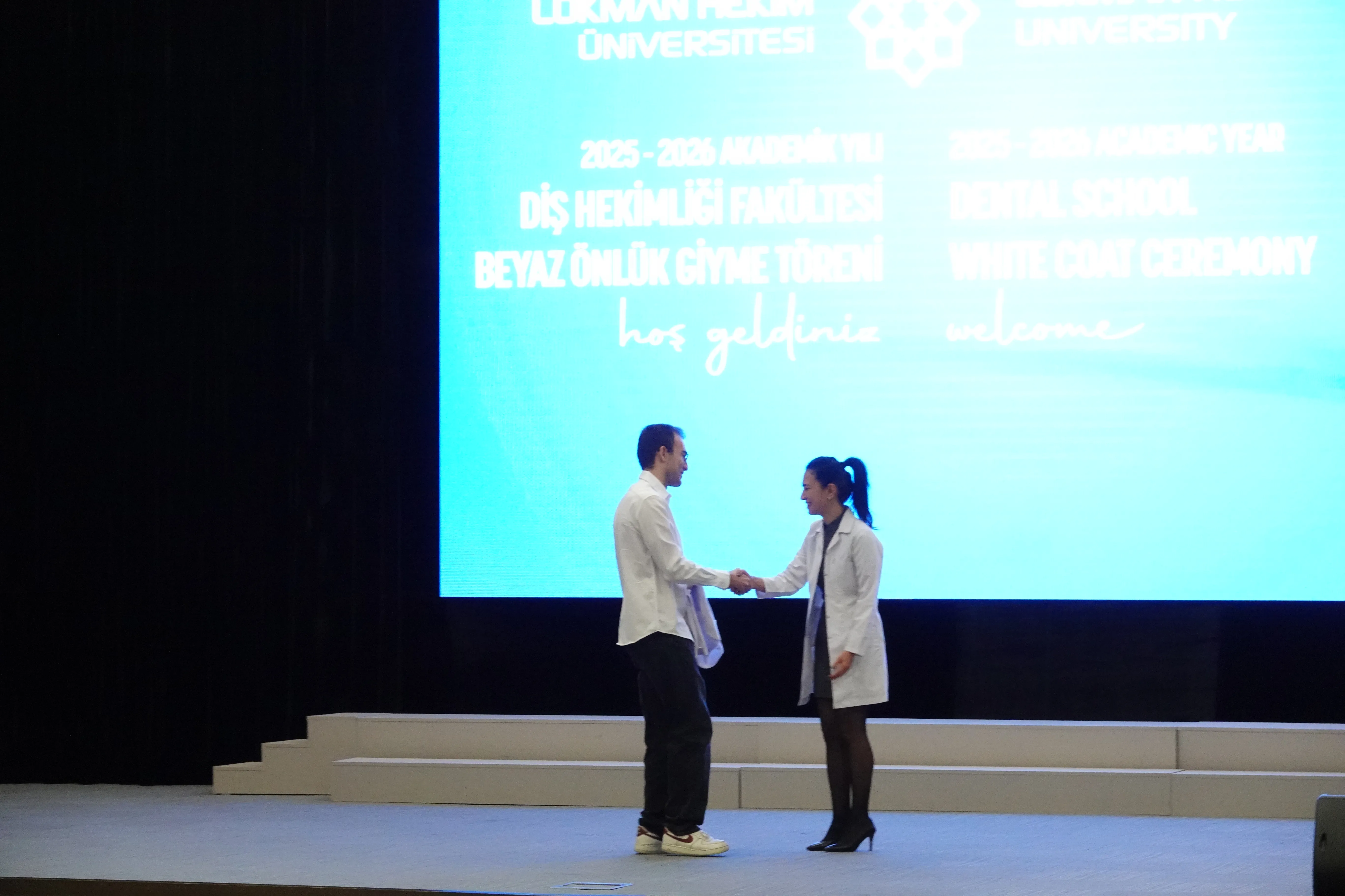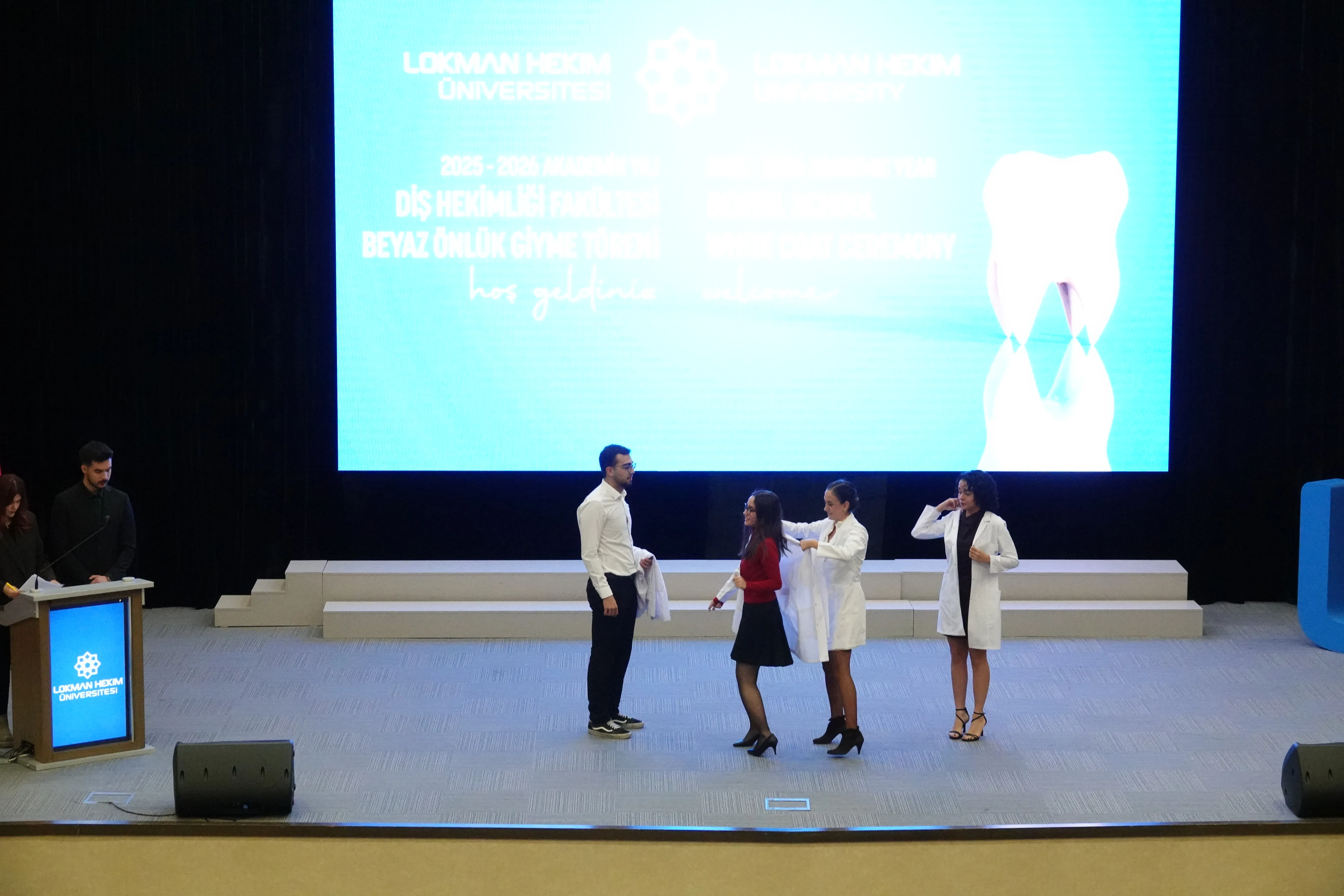 Lokman Hekim Üniversitesi Diş Hekimliği Fakültesi öğrencilerinin mesleki yaşamlarına ilk adımlarını simgeleyen Beyaz Önlük Giyme Töreni, 24 Kasım 2025 Pazartesi günü MTA Sadrettin Alpan Konferans Salonu’nda gerçekleştirildi. Öğrenciler, akademisyenler ve ailelerin katılımıyla düzenlenen tören, diş hekimliği eğitiminde önemli bir geçiş aşamasını temsil eden anlamlı bir buluşma oldu.