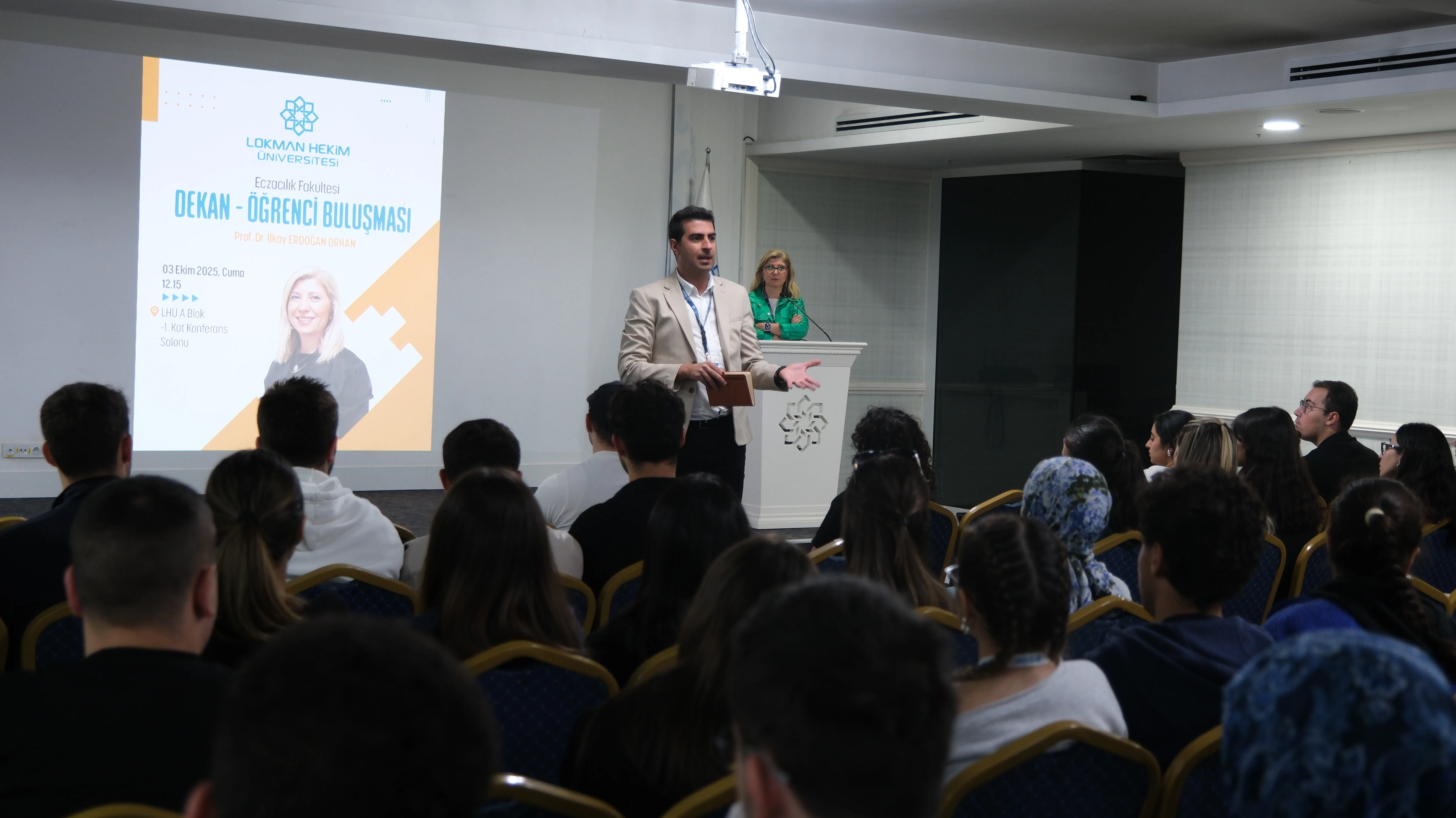 03 Ekim 2025 Cuma günü saat 12.15’te LHÜ A Blok -1. Kat Konferans Salonu’nda düzenlenen programa, Eczacılık Fakültesi Dekanı Prof. Dr. İlkay ERDOĞAN ORHAN başkanlık etti. Etkinlikte öğrenciler, eğitim süreçlerine ilişkin görüş ve önerilerini doğrudan Dekan Orhan’a aktarma fırsatı buldu.
