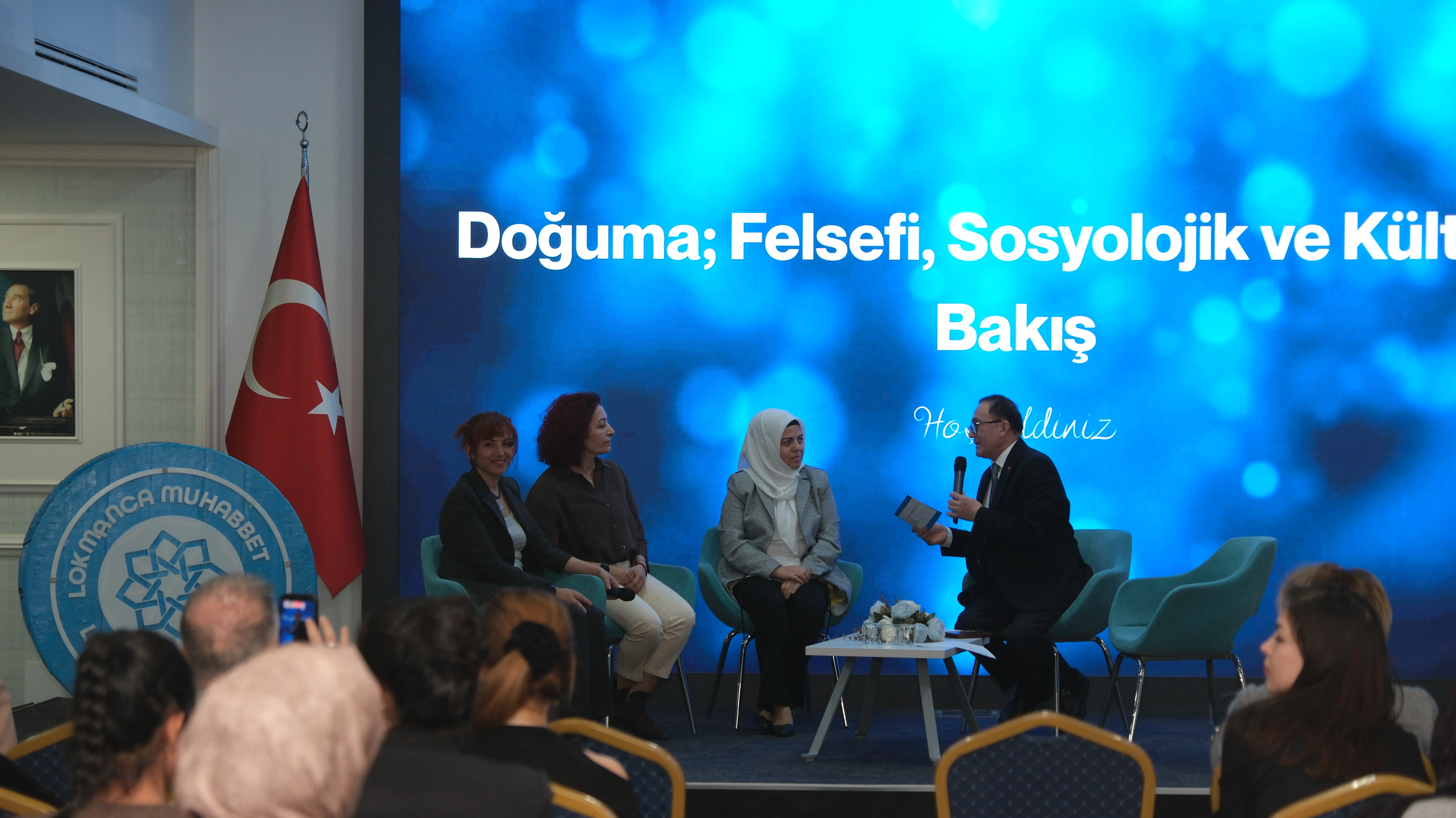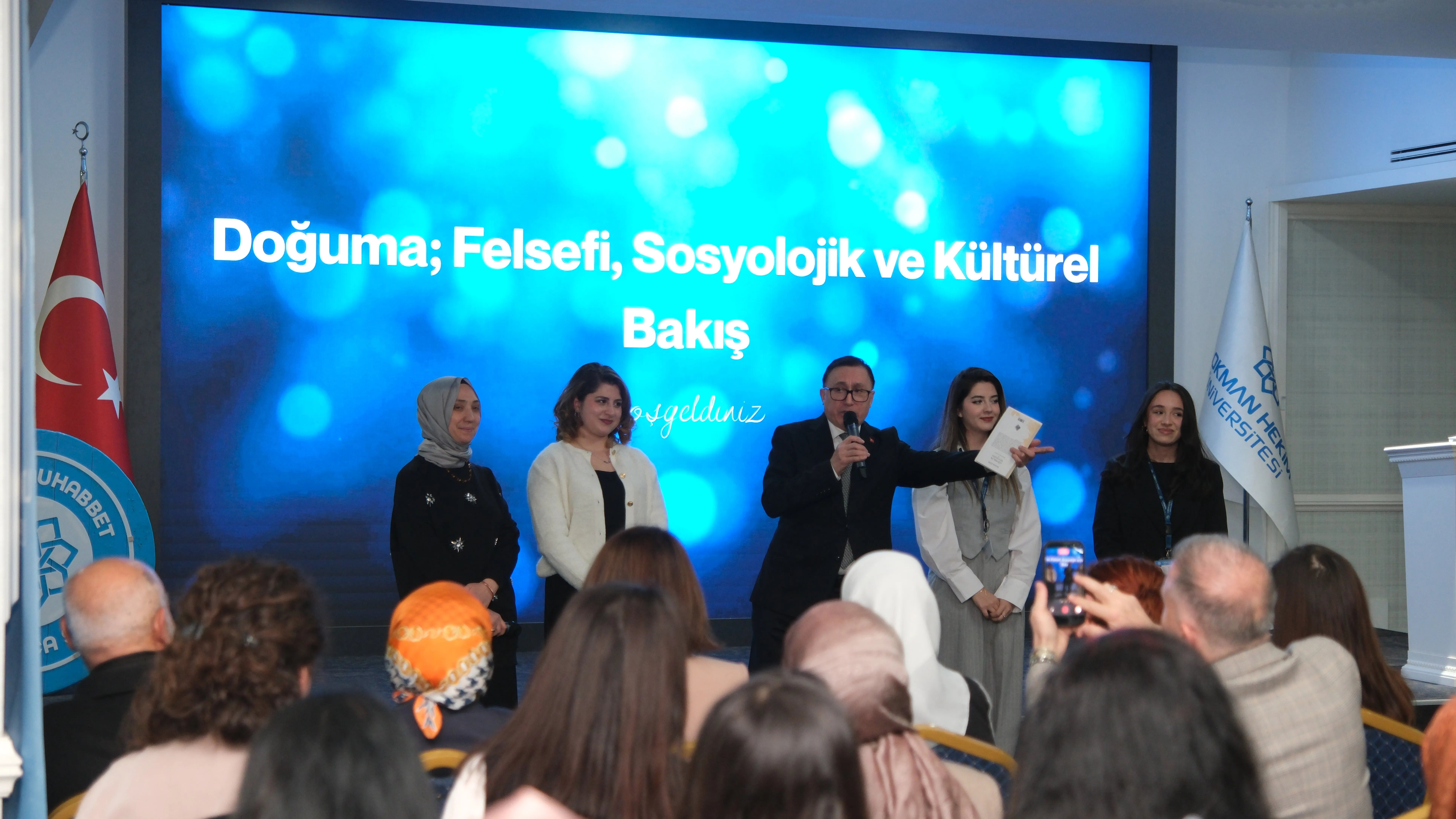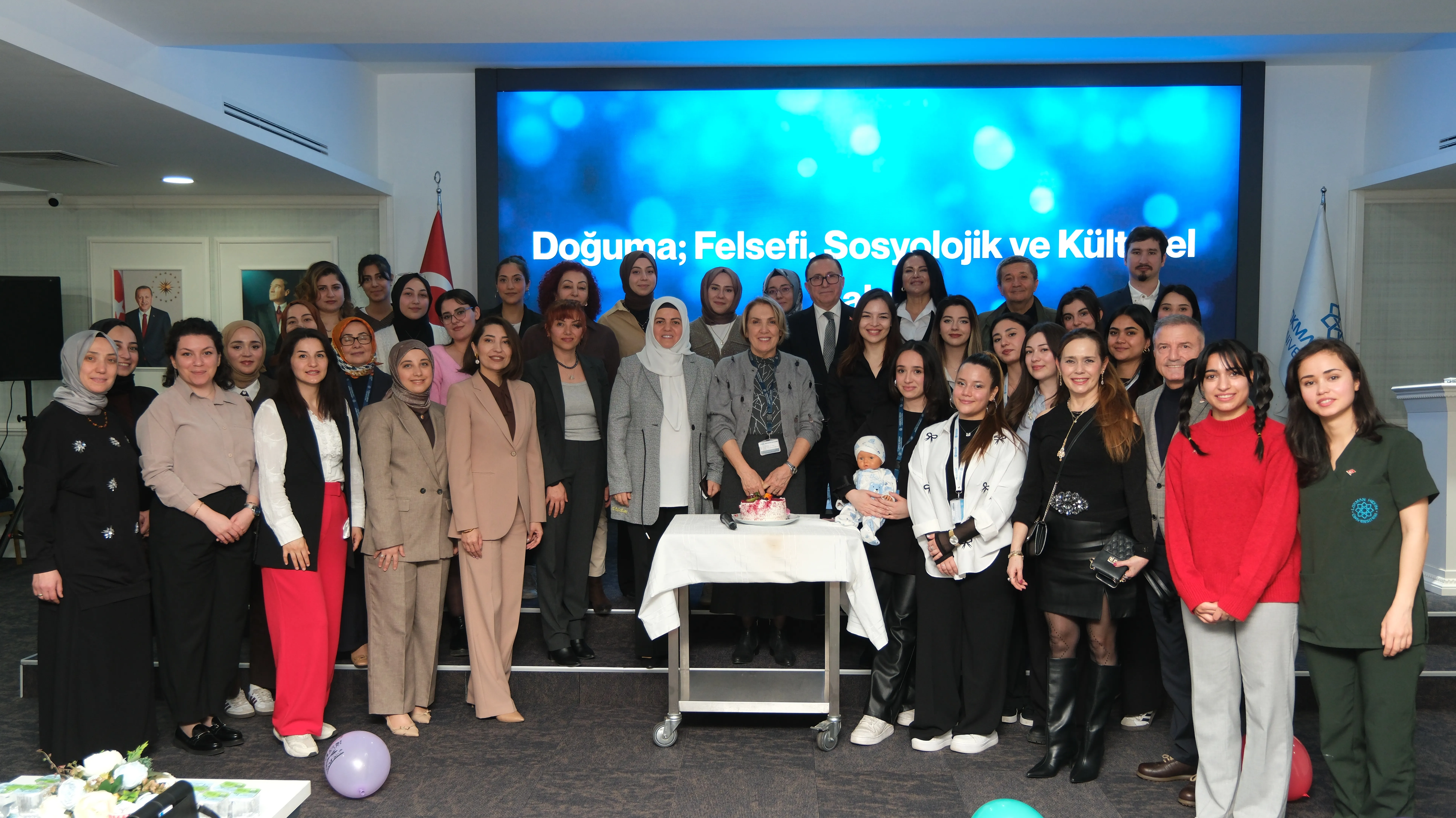 Lokman Hekim Üniversitesi Sağlık Bilimleri Fakültesi Ebelik Bölümü, Hayat Veren Eller Öğrenci Topluluğu, Sosyal Kültürel İşler Daire Başkanlığı ve Sosyal Projeler Koordinatörlüğü tarafından düzenlenen “Lokmanca Söyleşi” programı kapsamında gerçekleştirilen “Doğuma: Felsefi, Sosyolojik ve Kültürel Bakış” başlıklı etkinlik, 17 Şubat tarihinde LHÜ A Blok Konferans Salonu’nda yoğun katılımla gerçekleştirildi.