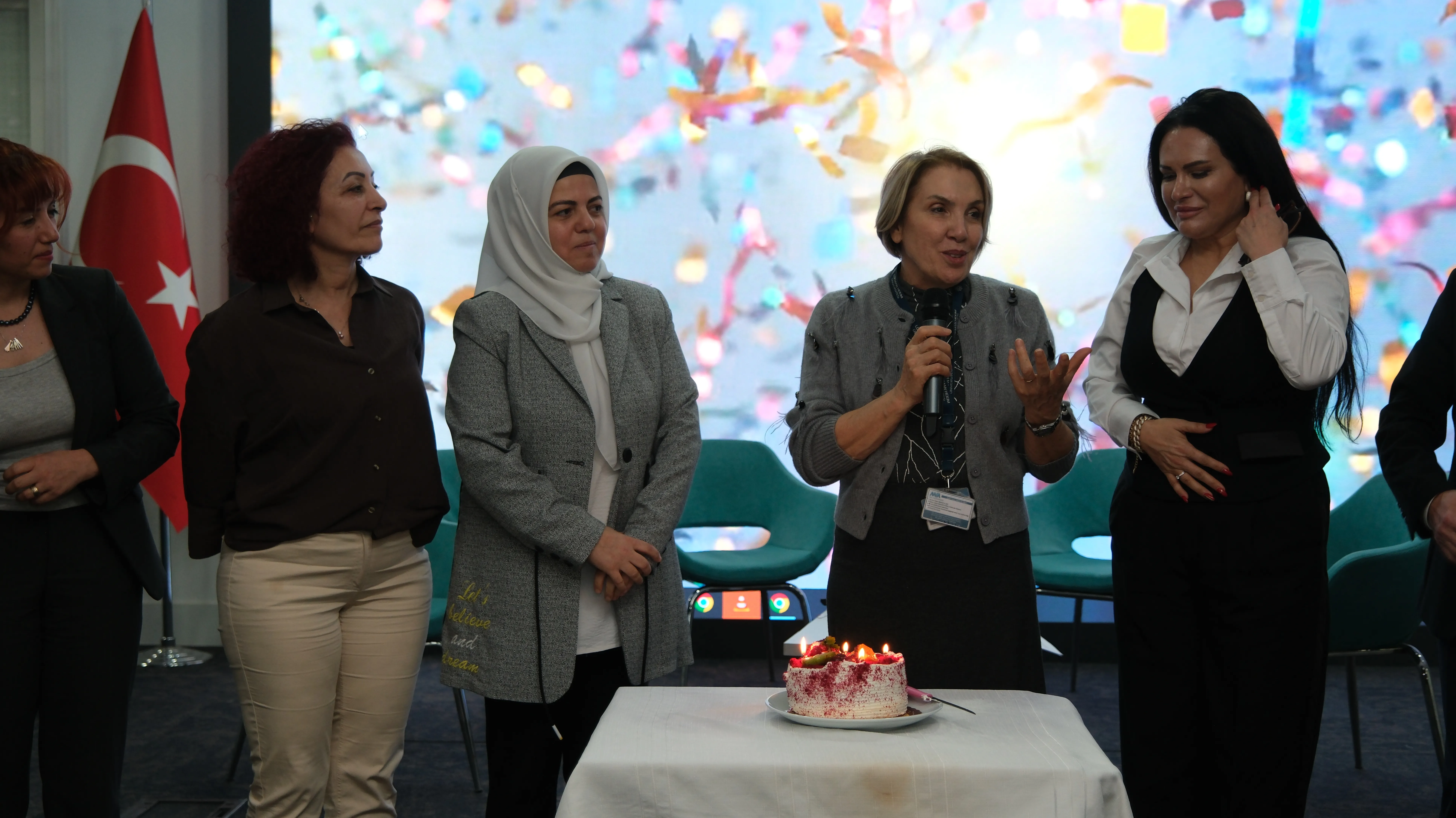 Lokman Hekim Üniversitesi Sosyal Projeler Koordinatörü Osman TEKİN'in modetaörlüğünü üstlendiği panel oturumunda Doç. Dr. Elif TERZİ, Doç. Dr. Didem ŞİMŞEK KÜÇÜKKELEPÇE ve Ebe Naile ONUK tarafından doğumun psikolojik, sosyolojik ve kültürel boyutları ele alındı.