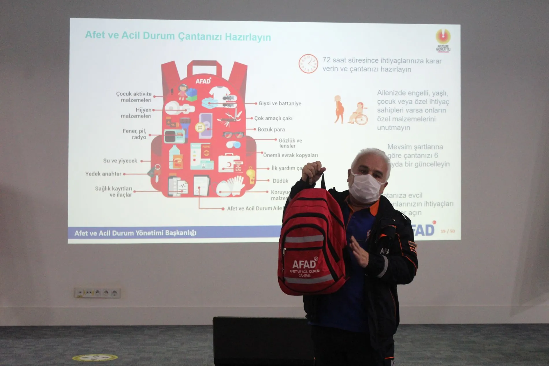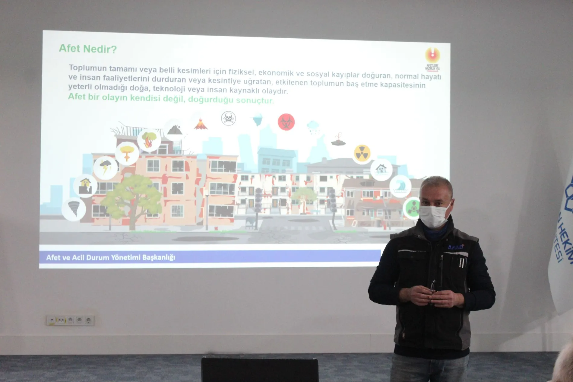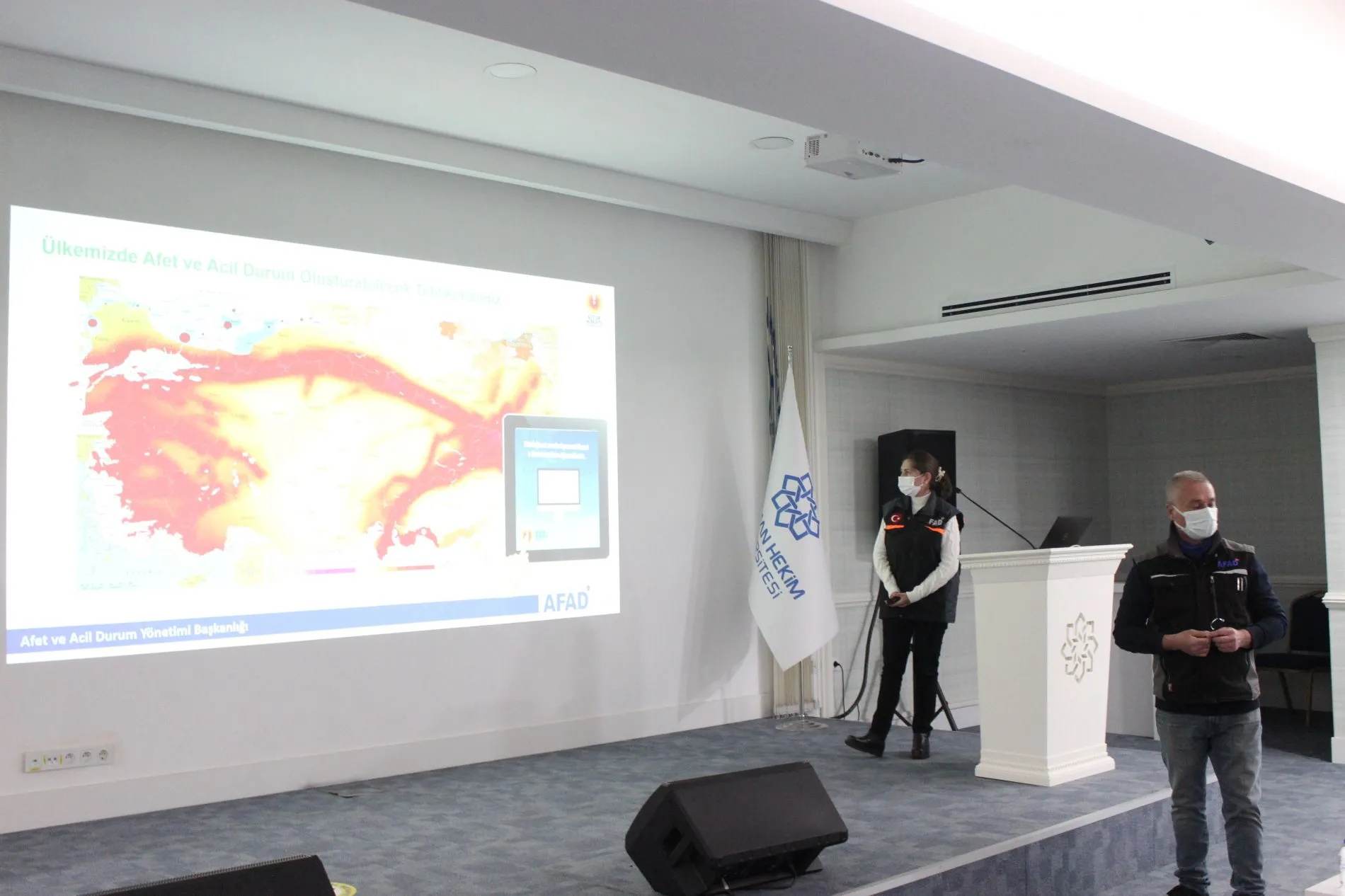 2021 Afet Farkındalık Eğitim Yılı olması sebebiyle Lokman Hekim Üniversitesi ve AFAD arasında yapılan protokol sonucu ve LHÜ İş Sağlığı ve Güvenliği Koordinatörlüğü bünyesinde AFAD yetkilileri tarafından Afet Farkındalık Eğitimi, üniversitemiz -1. kat konferans salonunda gerçekleştirildi. Üniversitemiz Acil Durum Ekiplerinin katıldığı eğitimde, afet anında ve sonrasında yapılması gerekenler hakkında bilgilendirme yapıldı.