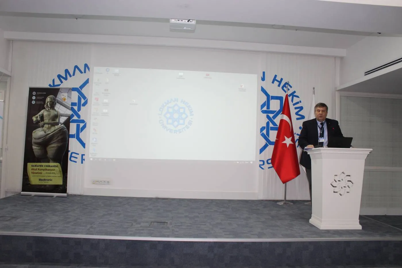 Bugün Üniversitemiz konferans salonunda Medtronic İnavasyon Merkezi ve Türk Obezite Cerrahisi Vakfı'nın katkılarıyla ''Bariatrik Cerrahide Komplikasyon Yönetimi'' konulu konferans gerçekleştirildi. Konferans LHÜ Rektörü Prof. Dr. Bülent GÜMÜŞEL, Prof. Dr. Halil ALIŞ, Prof. Dr. Oktay BANLI, Prof. Dr. Mustafa TAŞKIN'ın açılış konuşmaları ile başladı. Konferansta Bariatrik cerrahi nedir ve yeni bariatrik yöntemleri, Bariatrik cerrahi komplikasyonlarının medikal yönetimi ve ameliyat hazırlığı, medikolegal değerlendirilmesi, komplikasyonların erken tanı ve tedavisi, Gastric Bypass komplikasyonları gibi konulara yer verildi.