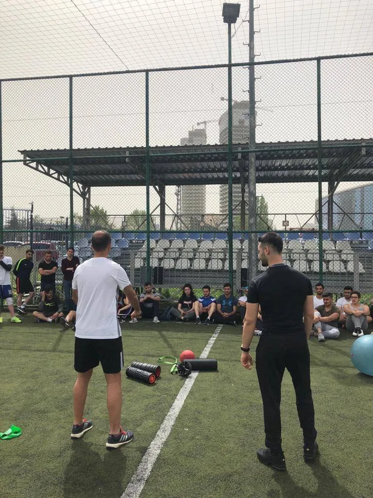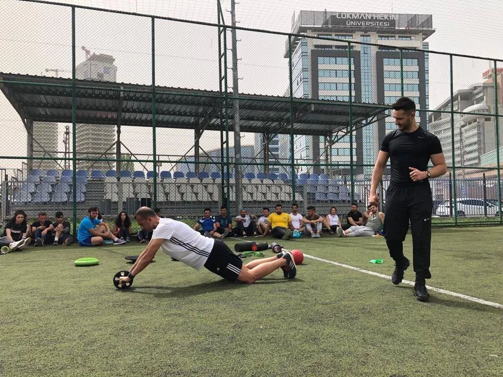 Öğrencilerimiz fitness dersi kapsamında Core egzersiz teknikleri, foam roller ve stabilizasyon konularını uygulamalı olarak işledi. Ders sorumlusu Dr. Cem Satman sorumluluğunda yapılan dersimize Kick boks ve Muay Thai antrenörü, Fitness ve Wellness eğitmeni olan ve 5 yıldır aktif sahada Atletik Performans koçu olarak görev yapan Sayın Mustafa Erdoğan katkı sağladı. Öğrencilerimizin büyük bir ilgi ile takip ettikleri keyifli ders için, Sayın Erdoğan'a çok teşekkür ederiz.
