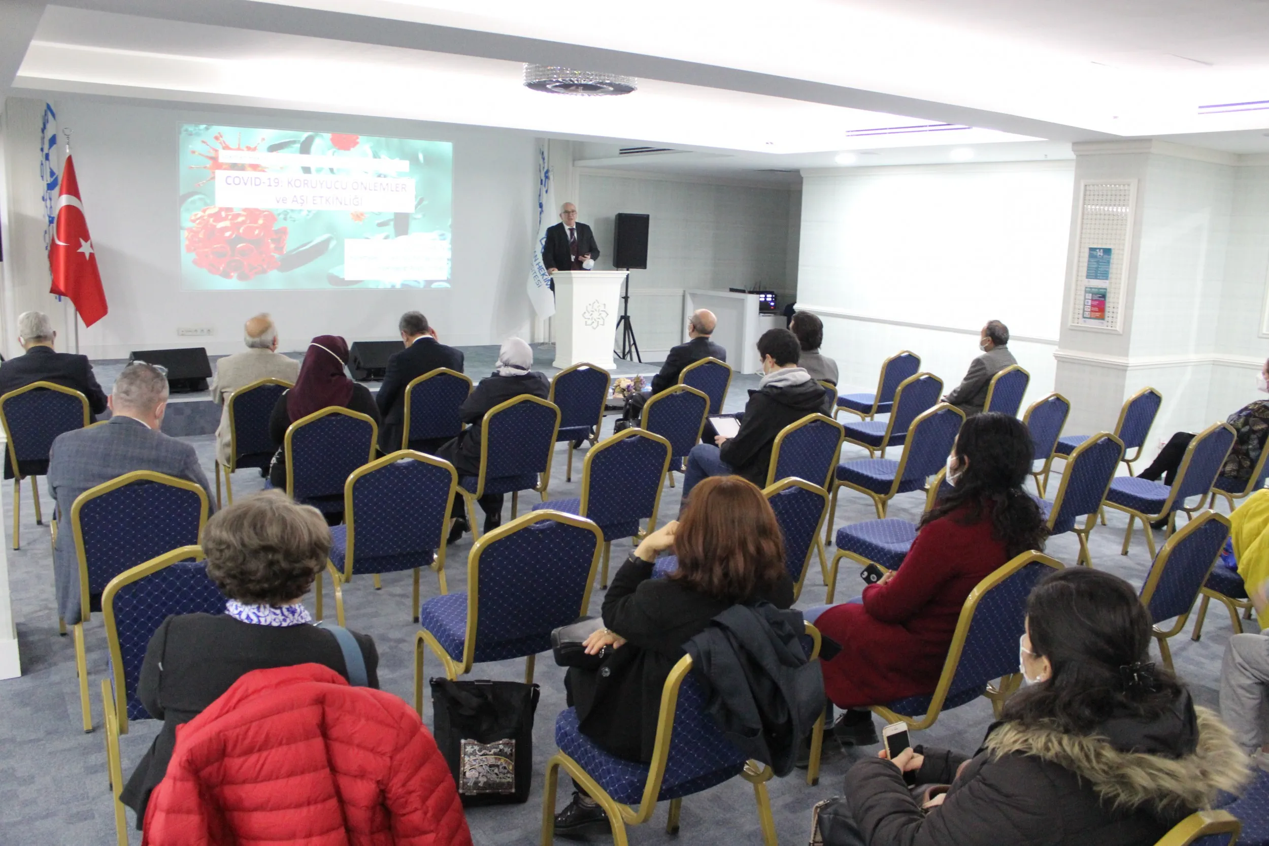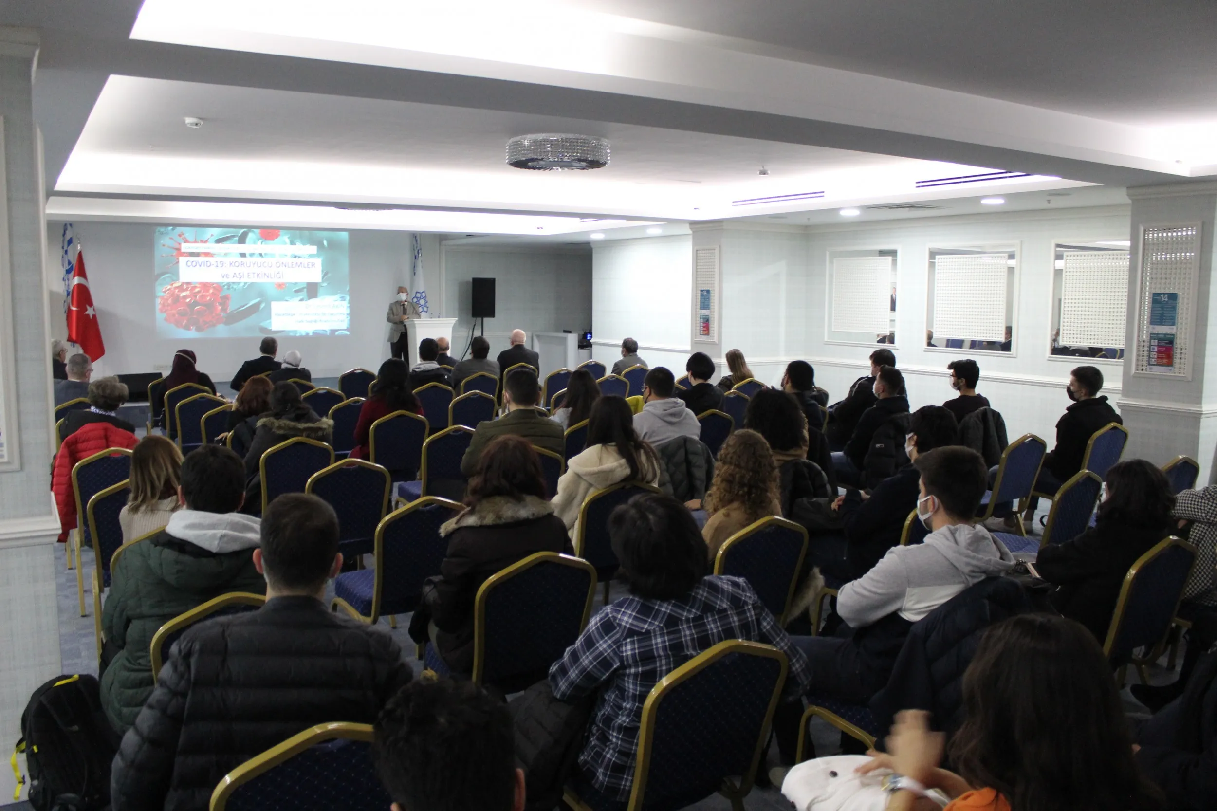 Lokman Hekim Üniversitesi Tıp Fakültesi Konferansları Devam Ediyor. Hacettepe Üniversitesi Tıp Fakültesi Halk Sağlığı Anabilim Dalı Öğretim Üyesi Prof. Dr. Levent AKIN’ın katılımları ile ‘Covid-19:Koruyucu Önlemler ve Aşı Etkinliği’ konferansı Prof. Dr. Sarp ÜNER moderatörlüğünde üniversitemiz akademisyenlerinin katılımı ile A blok -1. Kat konferans salonunda gerçekleştirildi.