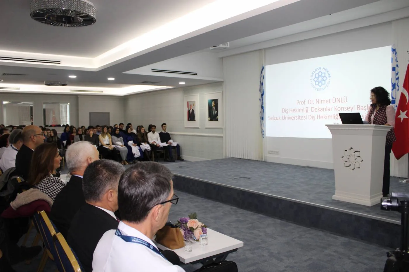 Lokman Hekim Üniversitesi Diş Hekimliği Fakültesi öğrencileri saflığın ve temizliğin sembolü beyaz önlüklerini bugün giydiler. Tören LHÜ Oda Müziği topluluğunun müzik dinletisi ile başladı, ardından açılış konuşmalarını yapmak üzere Lokman Hekim Üniversitesi Diş Hekimliği Fakültesi Dekanı Prof. Dr. Feridun HÜRMÜZLÜ fakültemizin ilk öğrencilerini kutladı ve başarılı bir akademik yıl geçireceklerini belirtti. Tören Ankara Diş Hekimleri Odası Başkanı Dr. Dt. Serhat ÖZSOY, Diş Hekimliği Dekanlar Konseyi Başkanı/Konya Selçuk Üniversitesi Diş Hekimliği Fakültesi Dekanı Prof. Dr.Nimet ÜNLÜ ve Kütahya Diş Hekimliği Fakültesi Dekanı Yavuz AYDINTUĞ’un sunumu ve konuşması ile devam etti. Lokman Hekim Üniversitesi Rektörü Prof. Dr. Bülent GÜMÜŞEL Diş Hekimliği kazanan bütün öğrencilerimize, başarılarının en büyük destekçisi olmalarından dolayı tebrik ederek, Diş Hekimliği Fakültesi öğrencilerinden velilerini ayakta alkışlamalarını istedi. Öğrencilerin ailelerini alkışlamaları esnasında salonda duygu dolu anlar yaşandı. Hacettepe Üniversitesi Diş Hekimliği Fakültesi Klinik Bölümü akademisyeni Prof. Dr. Sevil ÇİFTÇİ ''Beyaz Dişler, Güzel Gülüşler / Güncel Diş Beyazlatma Teknikleri'' konulu konferansı ile fakülte öğrencilerine değerli bilgilerini aktardı. Fakültemizin ilk öğrencilerinin meslek hayatlarının ilk beyaz önlüğünü giydikleri bu önemli günde tüm öğrencilerimizi tebrik ediyor, başarı dolu bir eğitim - öğretim hayatı geçirmelerini diliyoruz. Video İçin Tıklayınız