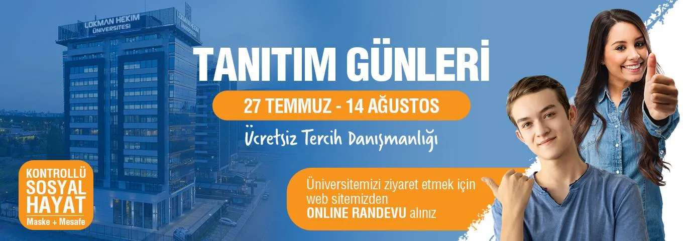 Lokman Hekim Üniversitesi Tanıtım Günleri Başladı. Covid-19 pandemisinden dolayı sizlerin ve ailelerinizin sağlığını düşünerek Lokman Hekim Üniversitesi’ni ziyaret edebilmeniz için randevu sistemi oluşturulmuştur. Online Randevu oluşturmak için tıklayabilirsiniz.