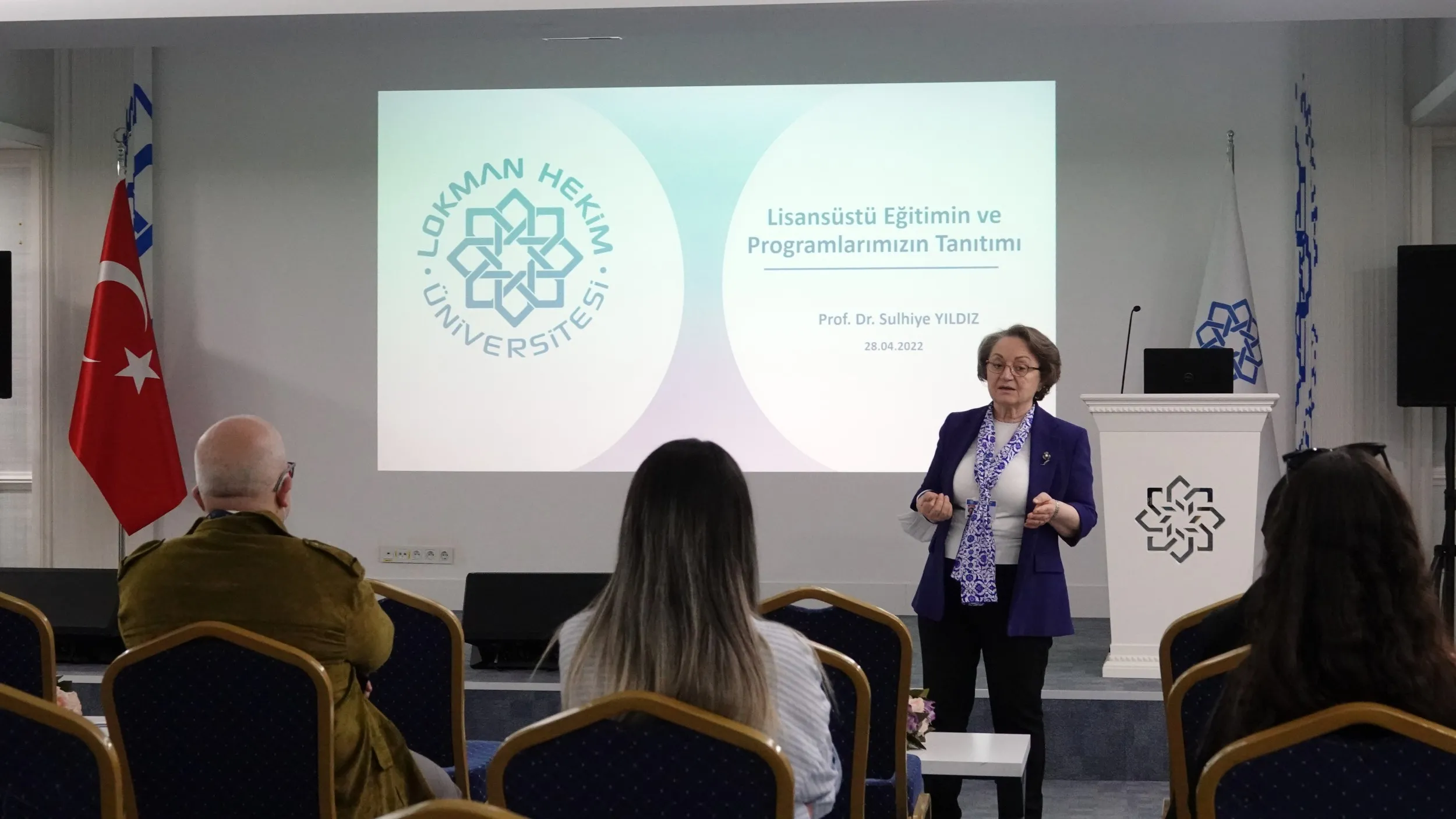 Lokman Hekim Üniversitesi Sağlık Bilimleri Enstitüsü Müdürü Prof. Dr. Sulhiye YILDIZ, Enstitü Müdür yardımcısı Prof. Dr. Sarp ÜNER ve akademisyenlerimizin katılımı ile Lisans Mezunu Adaylarımız ile 28 Nisan 2022, Perşembe günü, 12.30-13.20 arasında LHU A Blok -1. Kat konferans salonunda “Lisansüstü Eğitimi Tanıtım Buluşması” gerçekleştirildi.