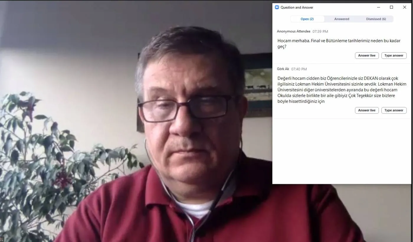 Rektörümüz Prof. Dr. Bülent GÜMÜŞEL öğrenciler ile online olarak bir araya geldi. Webinar toplantısı olarak gerçekleştirilen etkinlikte fakülte dekan ve yardımcıları, enstitü müdürü ve yardımcıları, sağlık hizmetleri meslek yüksek okulu müdürü ve yardımcıları da yer aldı. Pandemi sürecindeki eğitim ve sınavlar hakkında sorularını ileten öğrencilerimiz, taleplerini de dile getirdiler. Alınan önlemler, sınavlar, stajlar ve pandemi sürecindeki eğitim hakkında detaylı bilgi veren rektör Gümüşel katılan tüm öğrencilere teşekkürlerini iletti.