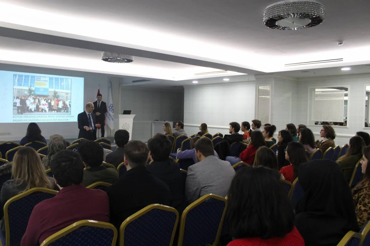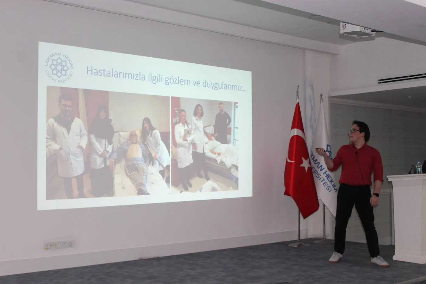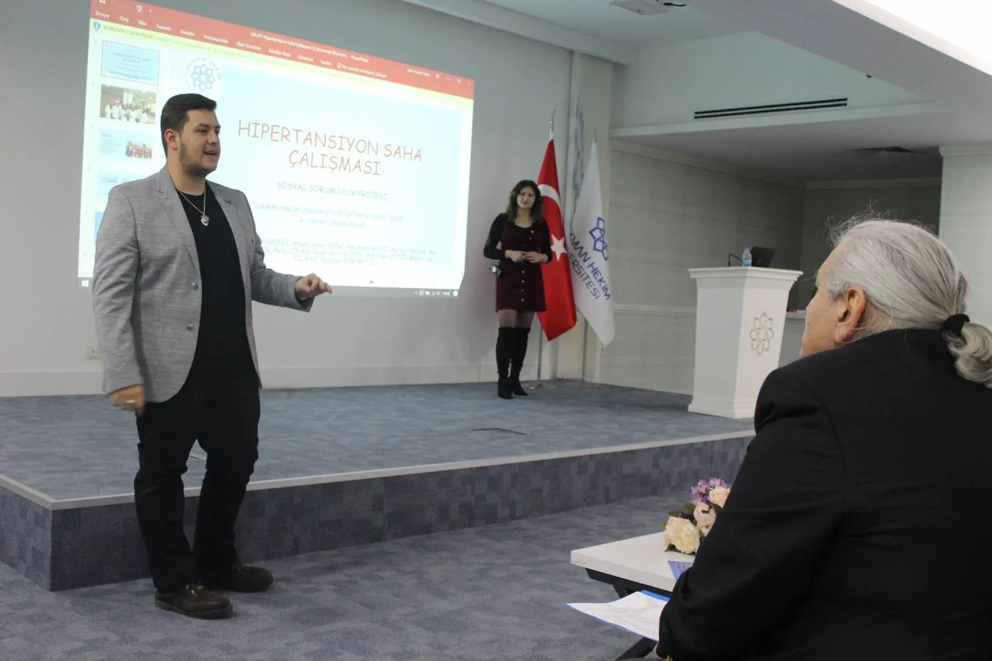 Üniversitemiz Tıp Fakültesi Dönem 2 öğrencileri sosyal sorumluluk projesi kapsamında hastalarla bir araya gelmelerinin ardından bugün sunumlarını gerçekleştirdi. Lokman Hekim Üniversitesi Hastanesinde hasta ve hasta yakınlarının tansiyonlarını ölçüp uyguladıkları anket sonucunda topladıkları verileri analiz ederek tıp fakültesi Dekanı Prof. Dr. Metin YILDIRIMKAYA ve akademik kadrosuna sunan öğrenciler, yaşadıkları deneyimleri de anlattı.