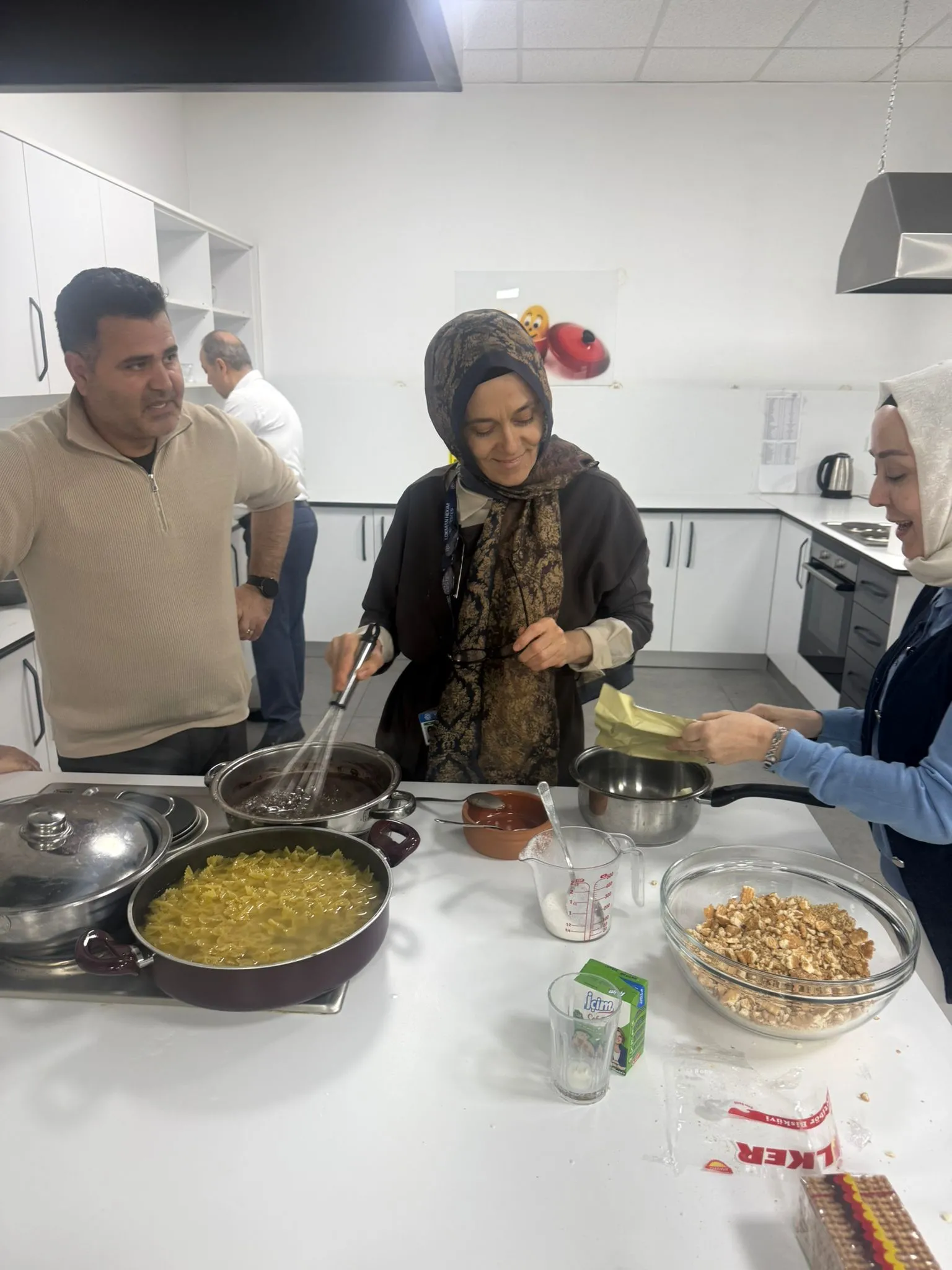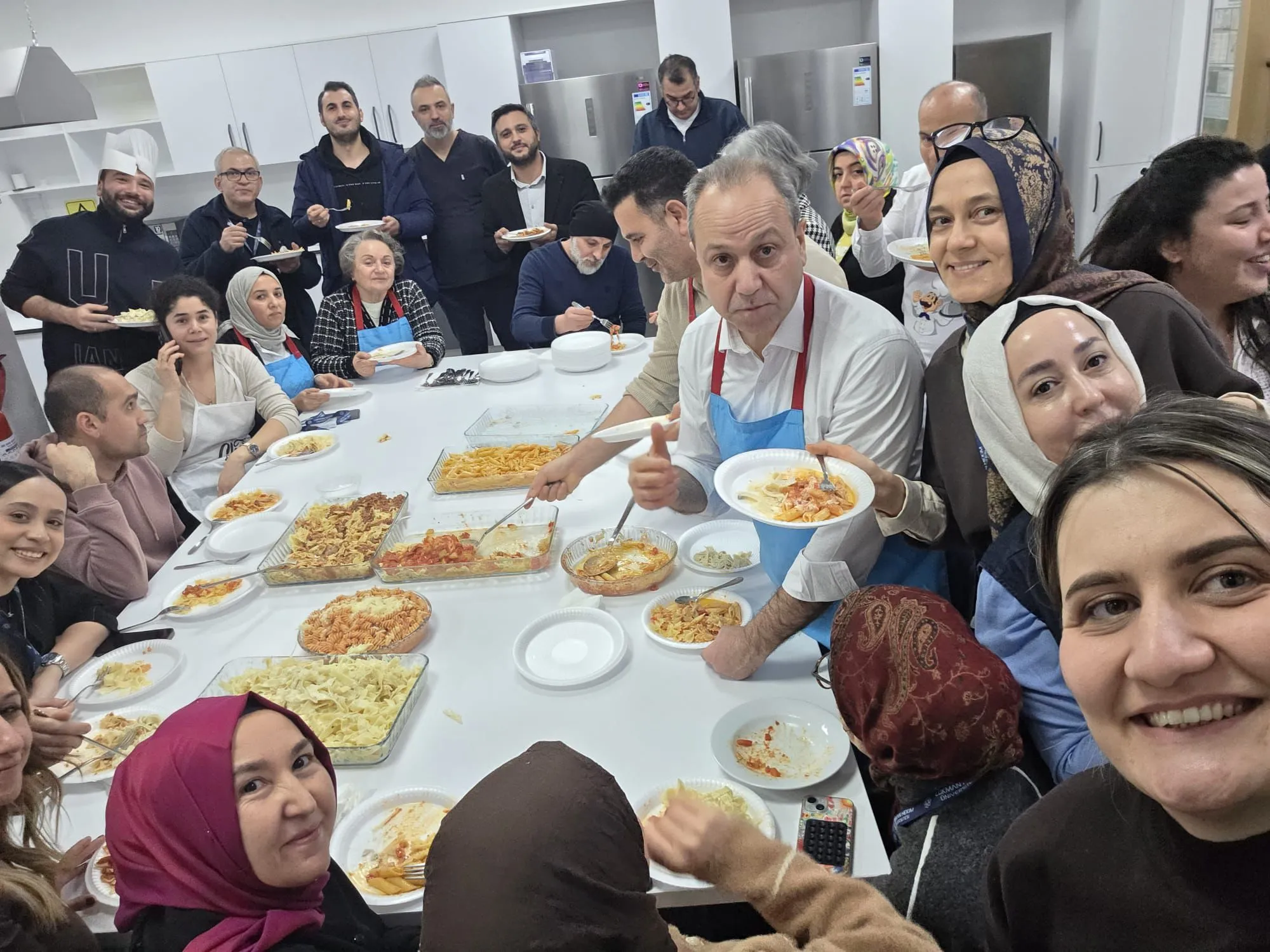 İdari ve akademik tüm çalışanlar, Makarna Mozaik Pasta Etkinliği kapsamında bir araya geldi.