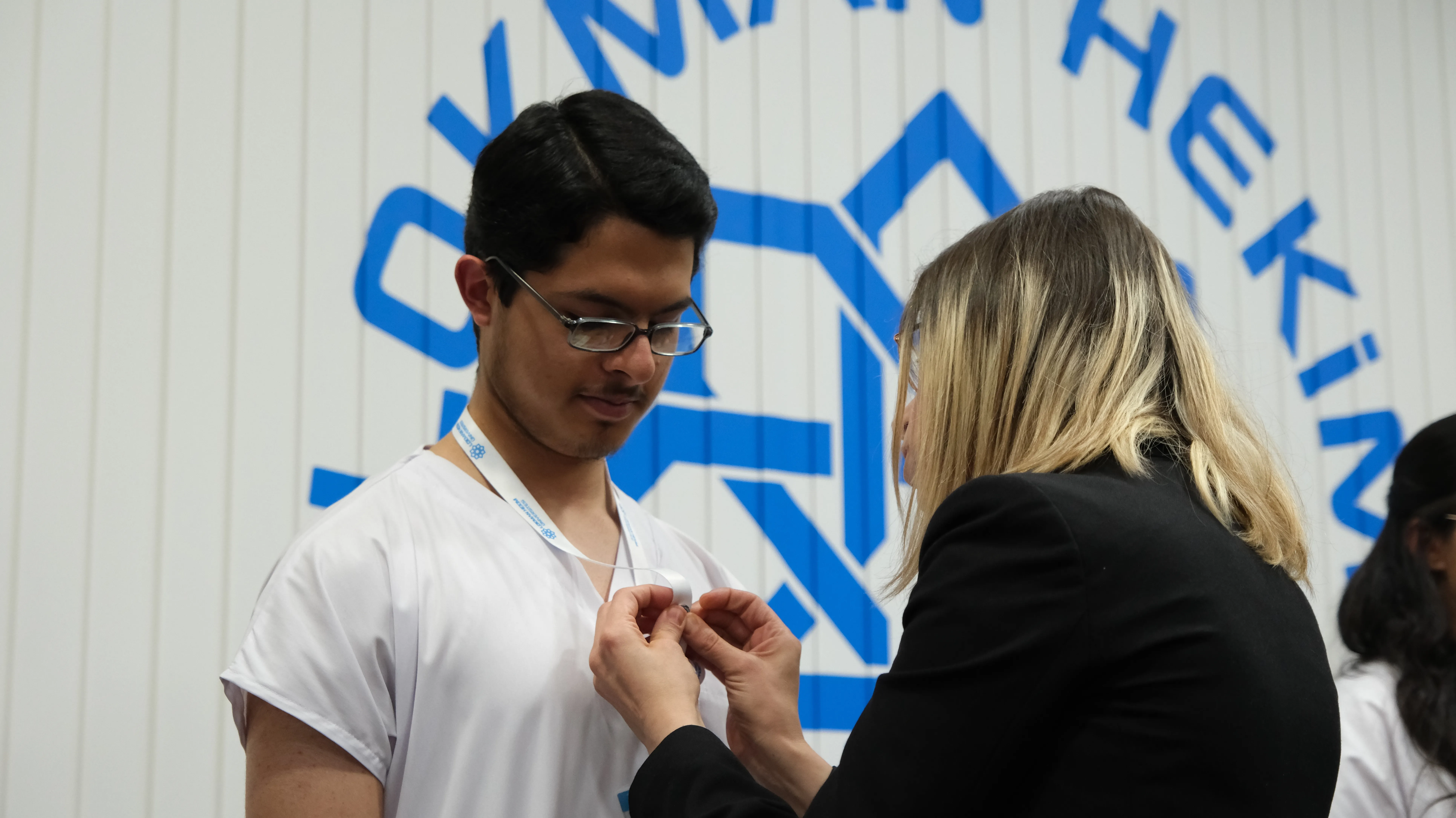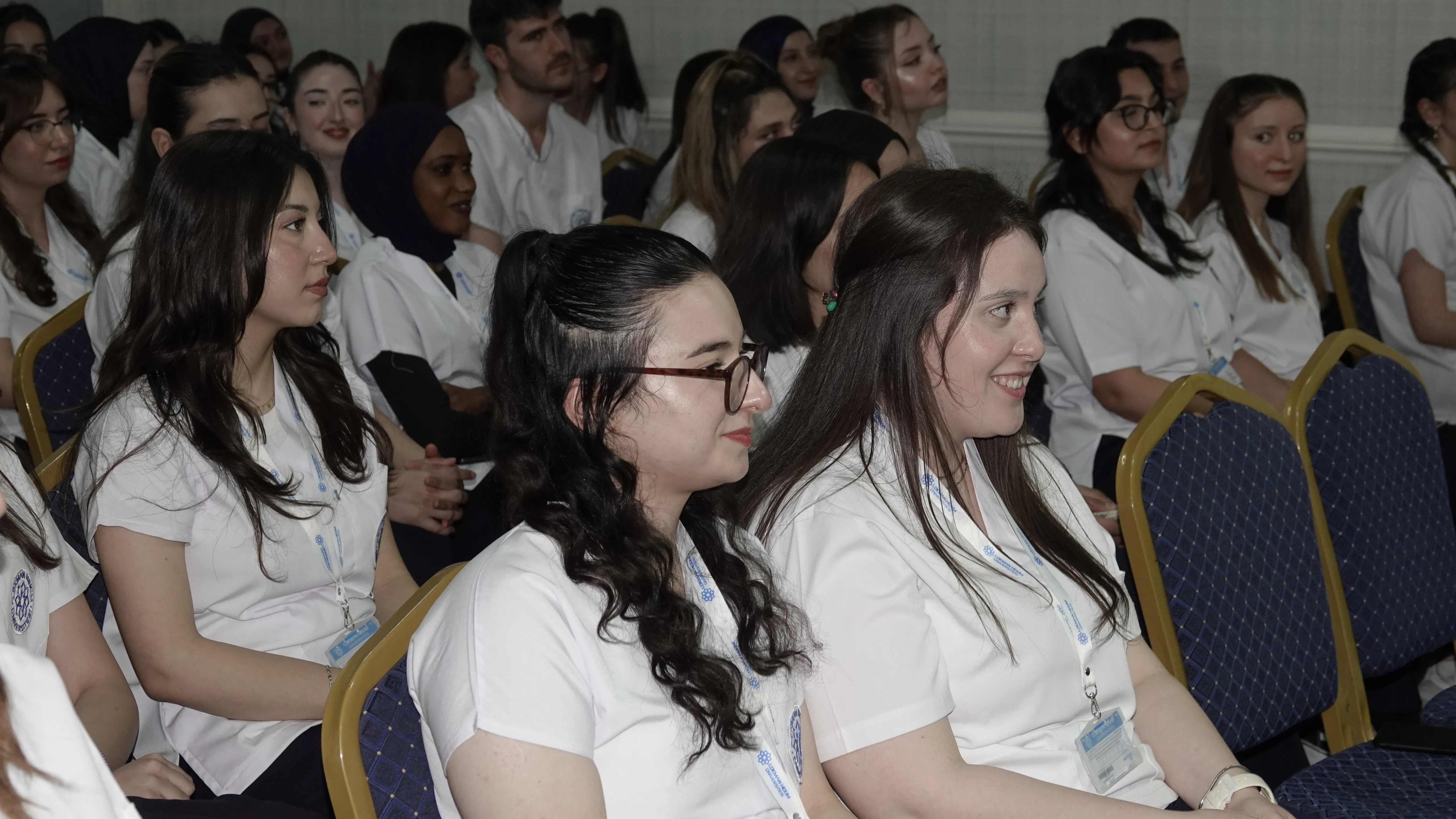 Açılış konuşmaları sonrasında Hemşirelik Bölümü öğrencilerimiz coşku ve heyecanla önlüklerini giyip, akademisyenlerimiz ve mezun öğrencilerimiz eşliğinde rozet takma törenlerini gerçekleştirdiler.