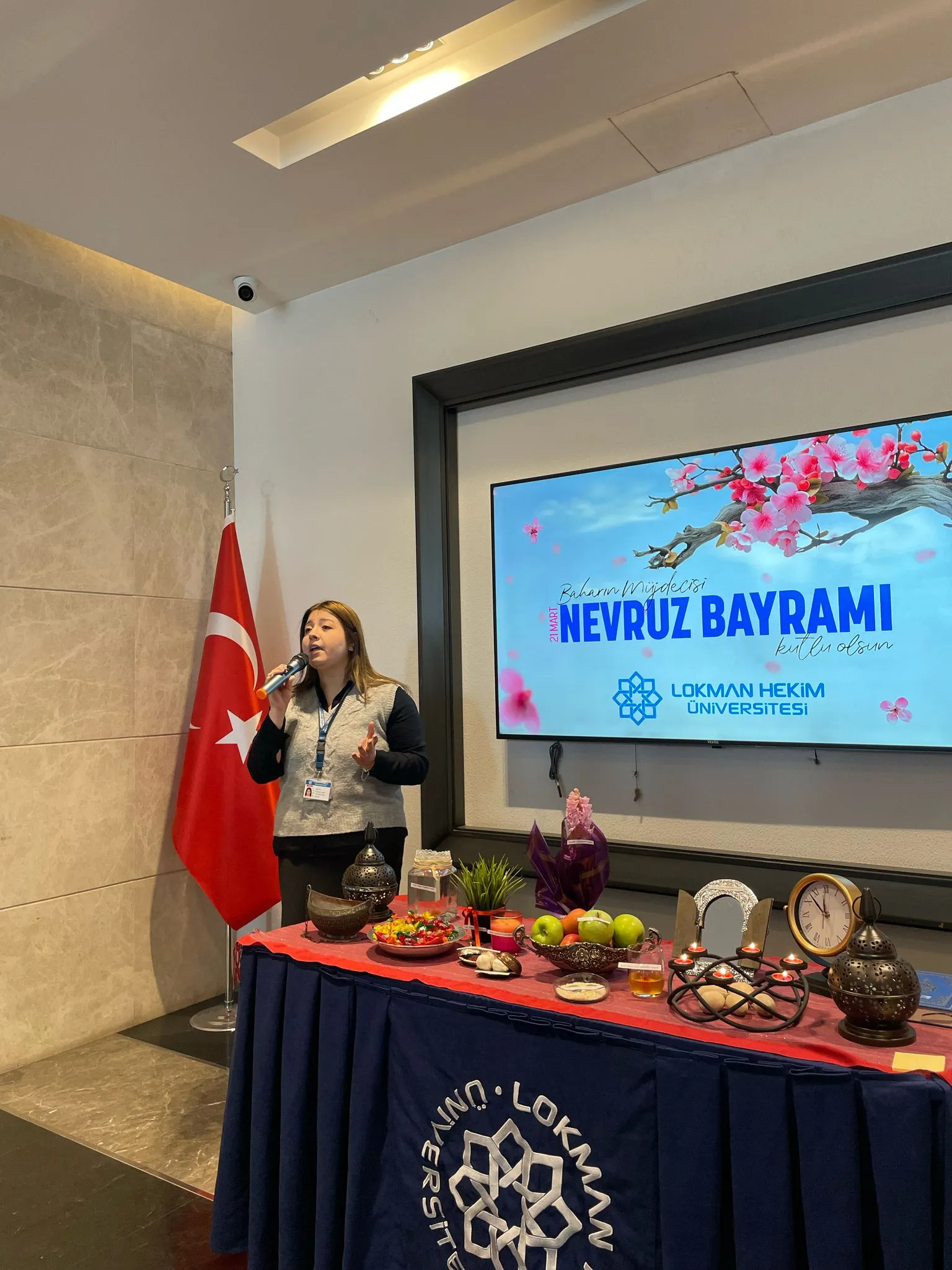 Baharın müjdecisi, doğanın uyanışını simgeleyen Nevruz Bayramı, Lokman Hekim Üniversitesi’nde büyük bir coşku ve neşe içinde kutlandı. Üniversitenin farklı toplulukları ve birimlerinin iş birliğiyle organize edilen etkinlik, 20 Mart 2025 tarihinde A Blok'ta gerçekleştirildi. Her yıl olduğu gibi bu yıl da, öğrenciler ve akademik kadro bir araya gelerek, Nevruz'un birlik, beraberlik ve yenilik getiren anlamını kutladılar.