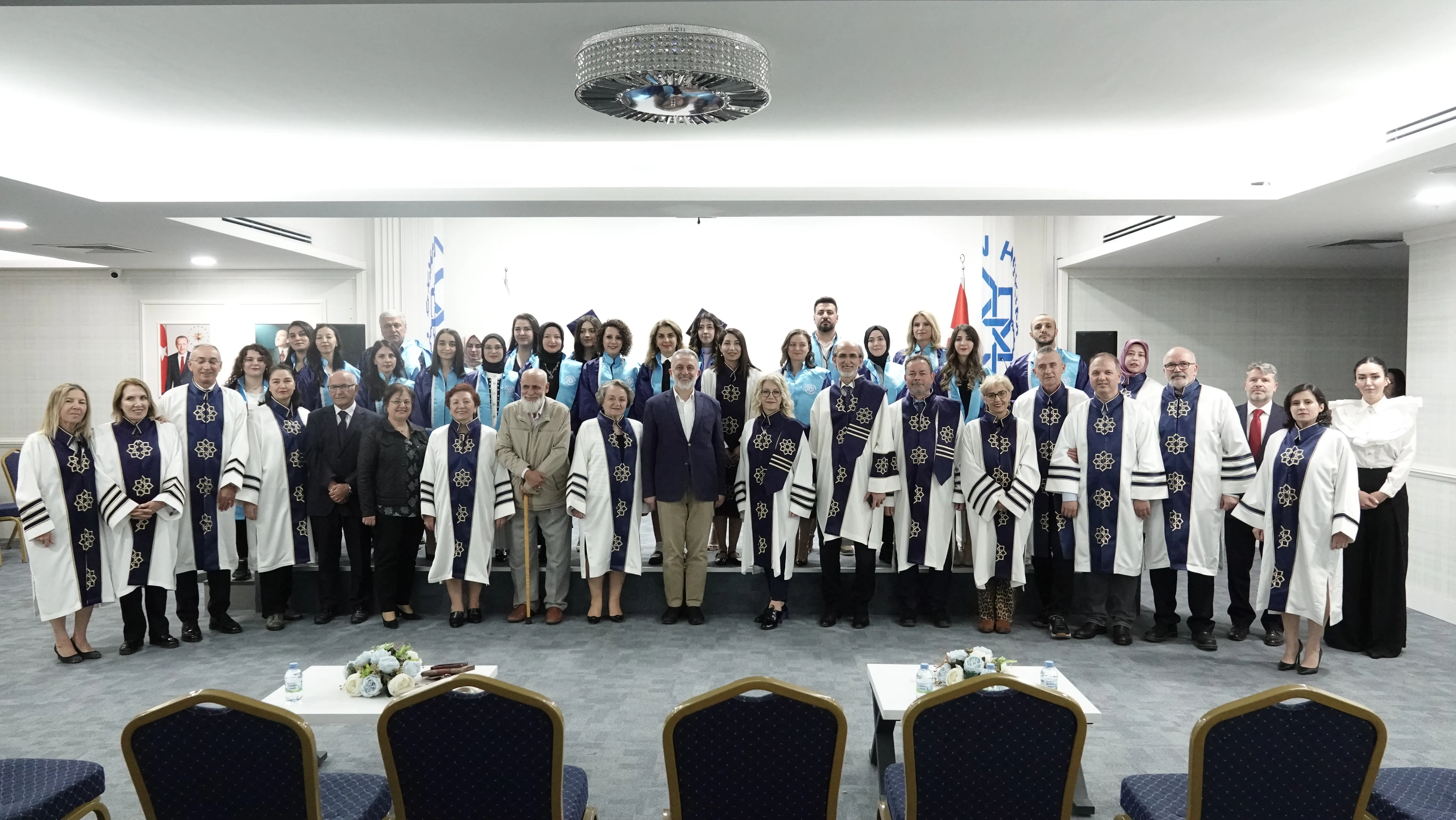 2 Mayıs 2024 Perşembe gün gerçekleşen törenin Sağlık Bilimleri Enstitüsü Müdürümüz Prof. Dr. Sayın Sulhiye YILDIZ, Rektörümüz Prof. Dr. Sayın Fatih GÜLTEKİN ve Mütevelli Heyet Başkanımız Dr. Sayın Mehmet ALTUĞ'un açılış konuşmalarının ardından mezunumuz ve aynı zamanda Öğretim Görevlimiz Sayın Ebru ESENKAYA dinleyicilerimize seslendi. Üniversitemiz Oda Müziği Topluluğu'nun müzik dinletisinin de sahne aldığı törende, dinletinin ardından da mezunlarımıza belge takdimleri gerçekleştirildi.