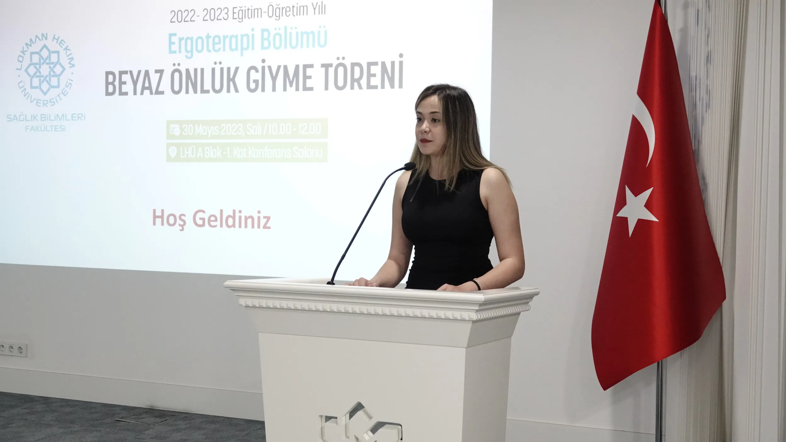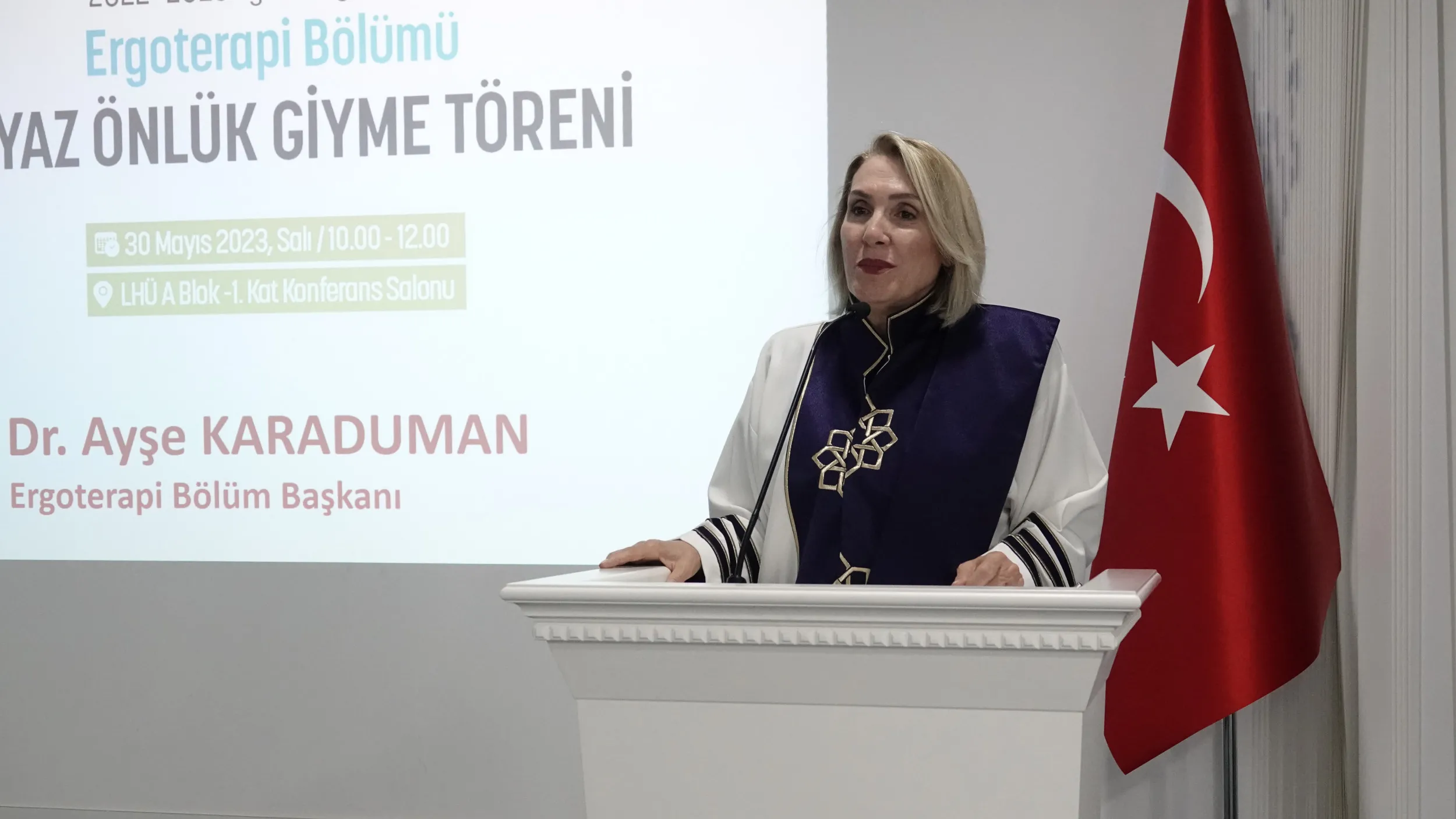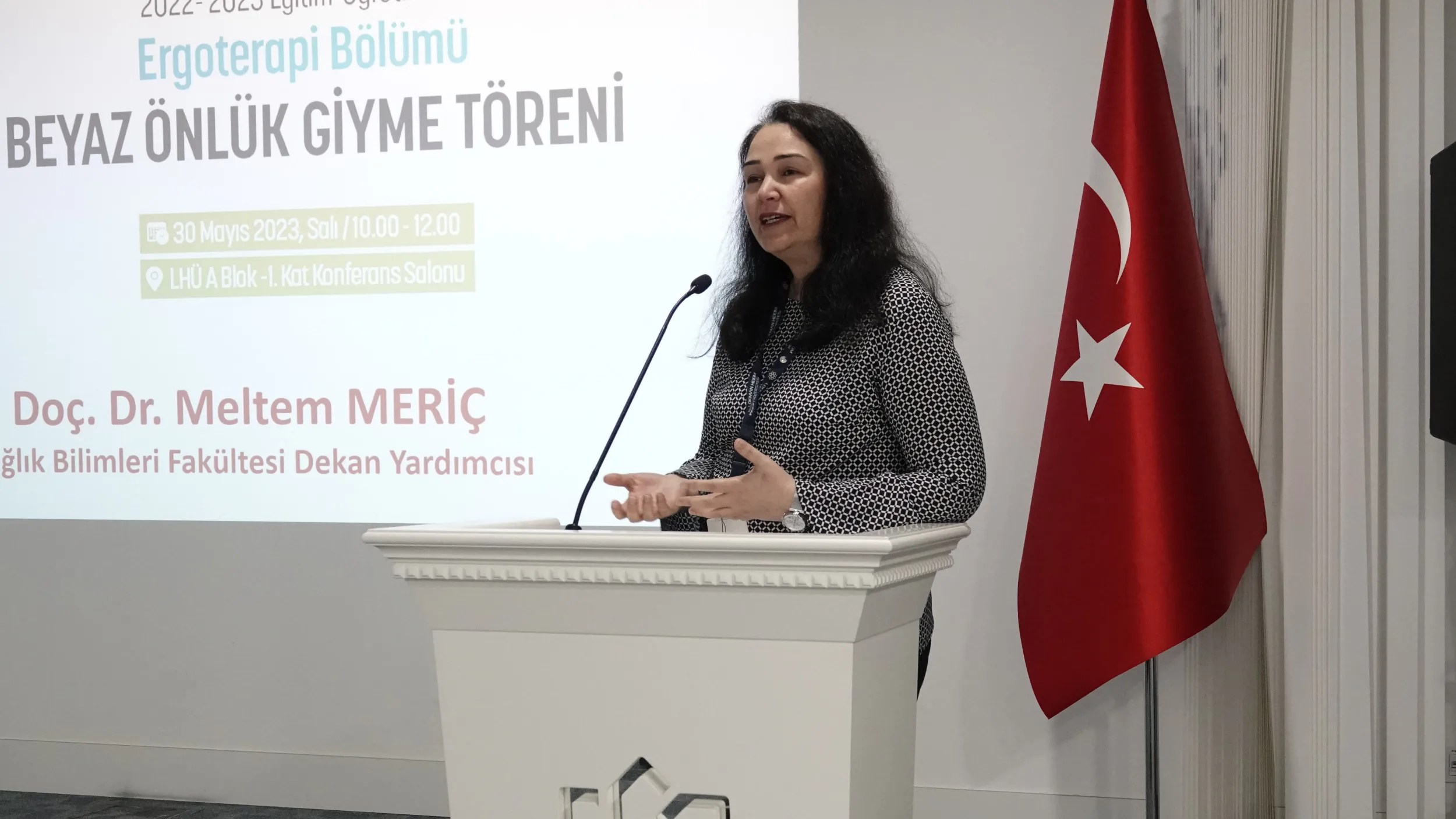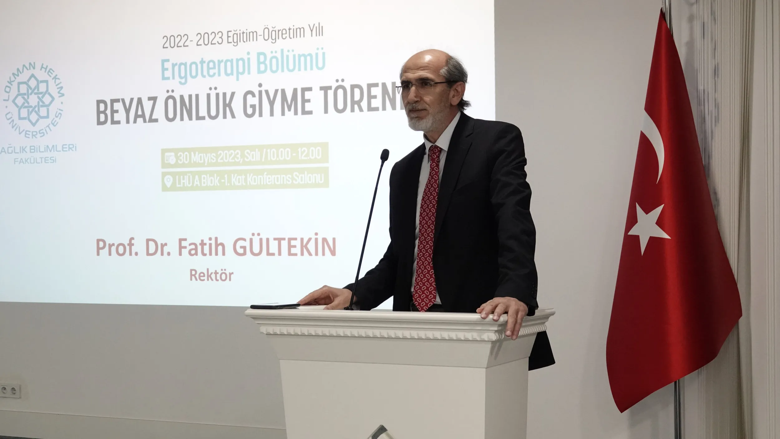 Ergoterapi bölümünde bölüm başkanı Prof. Dr. Ayşe KARADUMAN mesleğin dünü ve bugününden bahsederken bölümün ayrıcalıklarına da değindi. Rektör Prof. Dr. Fatih GÜLTEKİN Beyaz önlüklerini giyen tüm öğrencilerimizi tebrik edip ilk önlüğü giydirerek meslek hayatlarına ilk adımı atan öğrencilerimize başarılar diledi.