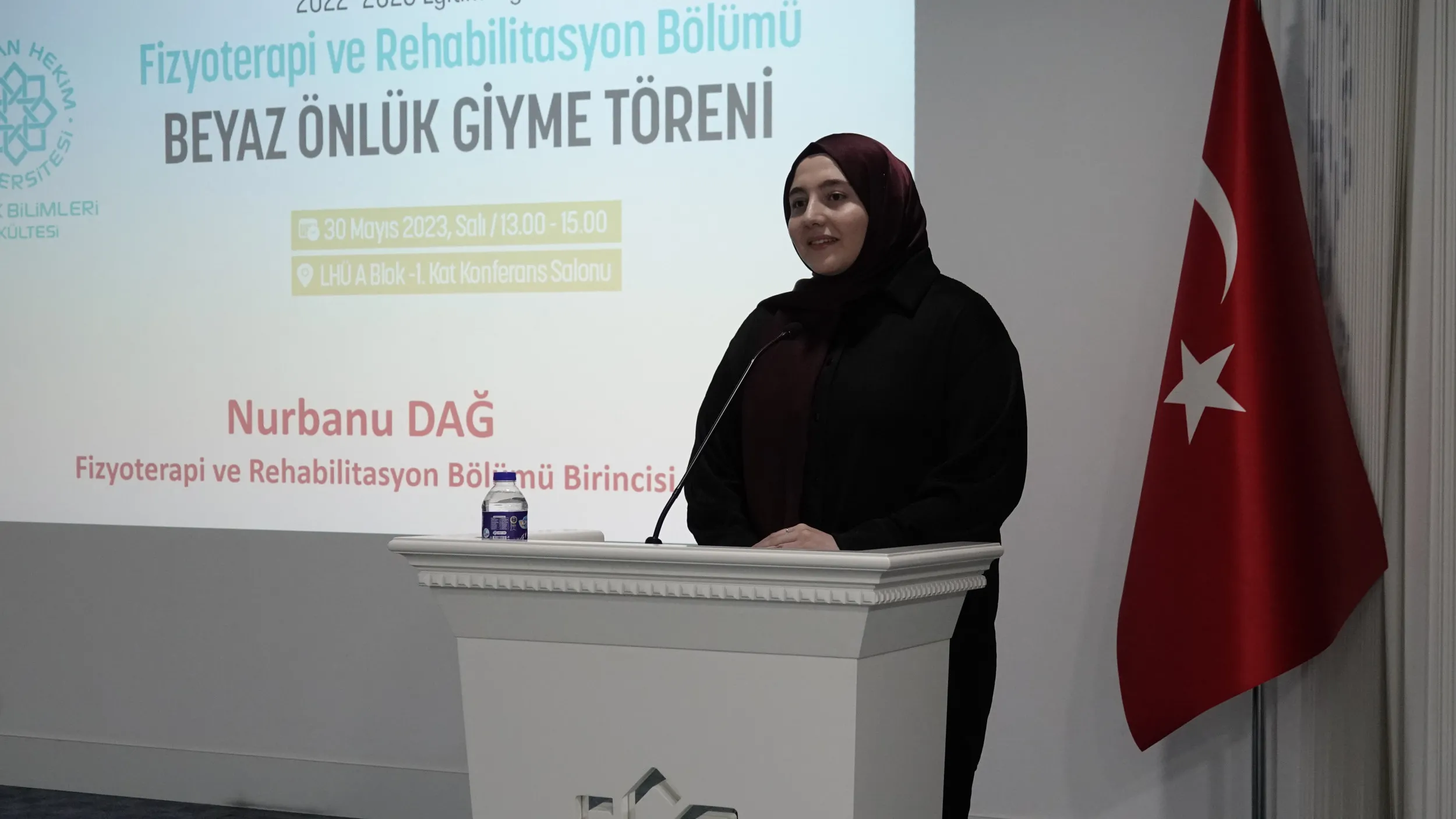 Fizyoterapi ve Rehabilitasyon Bölümünde Bölüm Başkanı ve Sağlık Bilimleri Fakültesi Dekanı Prof. Dr. Nilgün BEK’in konuşmaları ile devam eden törende heyecanını ve mutluluğunu dile getirirken, öğrencilerimizin giydiği beyaz önlükleri meslek hayatları boyunca gururla taşımalarını istedi. Ardından Rektör Prof. Fatih GÜLTEKİN'in öğrencileri tebrik etti. Son olarak Dr. Mehmet ALTUĞ öğrencilere ''bugün biz size beyaz önlüklerinizi emanet ettik, onunla birlikte şeffaf olun, adil olun, ayrımcılık yapmayın, dürüst olun, yardım elinizi insanlardan hiçbir zaman esirgemeyin’’ sözleri ile ilk önlükleri giydirerek tebrik etti.