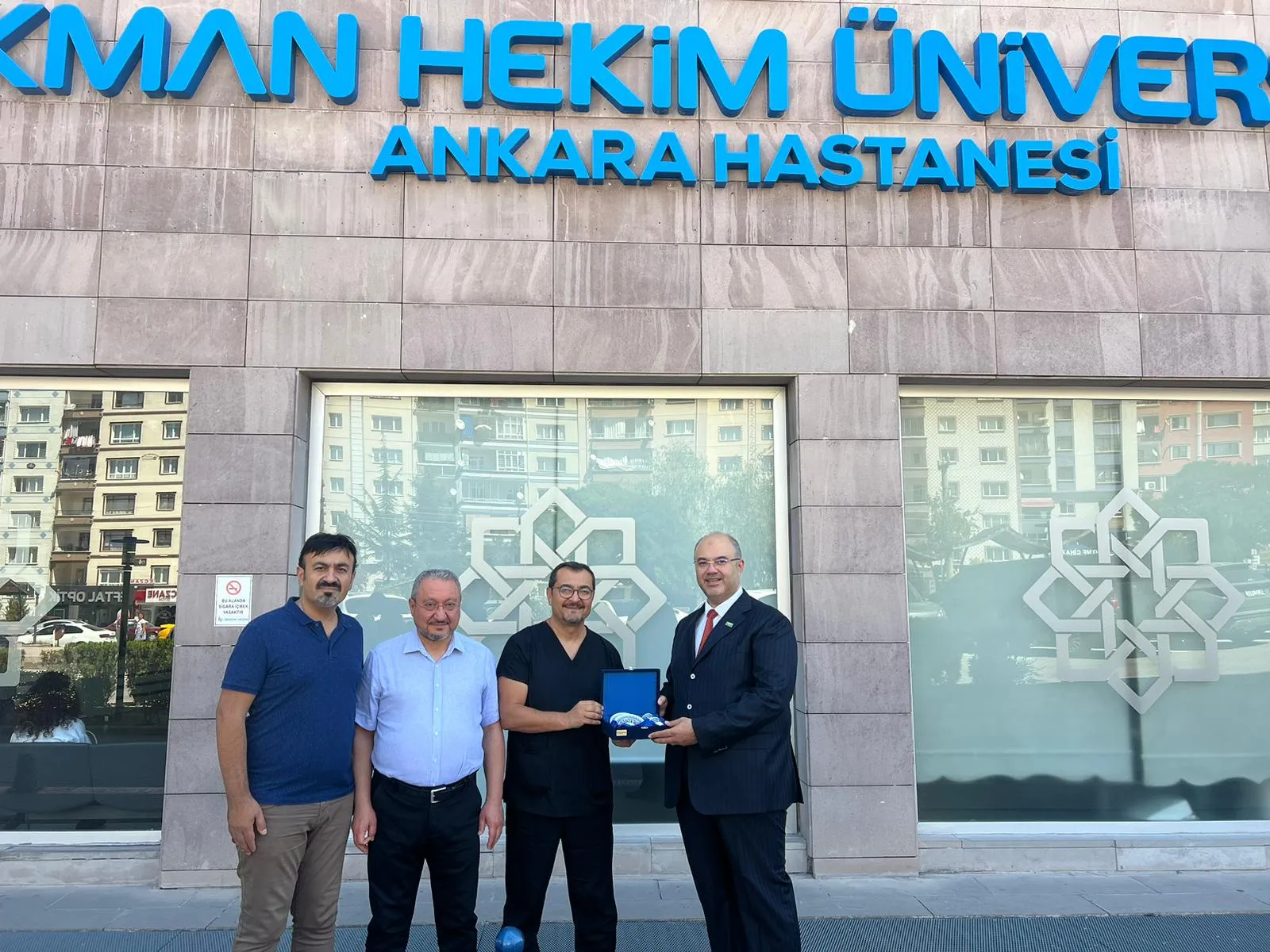 Suudi Arabistan Ankara Büyükelçiliği'ni temsilen Sayın Kültür Ataşesi Prof. Dr. Faisal Osra, 13 Temmuz 2024 tarihinde Lokman Hekim Üniversitesi Hastanesi'ni ziyaret ettiler. King Saud University ile yapılan ikili işbirliği anlaşması kapsamında, karşılıklı öğrenci, araştırmacı ve akademisyen değişim programları konusunda üniversite hastanemizin Başhekimi Sayın Dr. Barış Ecevit Yüksel ve İç Hastalıkları Anabilim Dalı Bölüm Başkanı Sayın Prof. Dr. Muhammet Güven ile fikir alışverişlerinde bulundular. Görüşme, hastane ziyareti öncesi Başhekimlik makamında karşılama ve karşılıklı bilgi paylaşımının ardından klinikler, ameliyathaneler, laboratuvarlar ve tıbbi görüntüleme merkezlerinin ziyaret edilmesiyle devam ederken, Lokman Hekim Üniversite Hastanesi tarafından Prof. Dr. Faisal Osra'ya Başhekimliğin hediye takdimleriyle sona erdi.