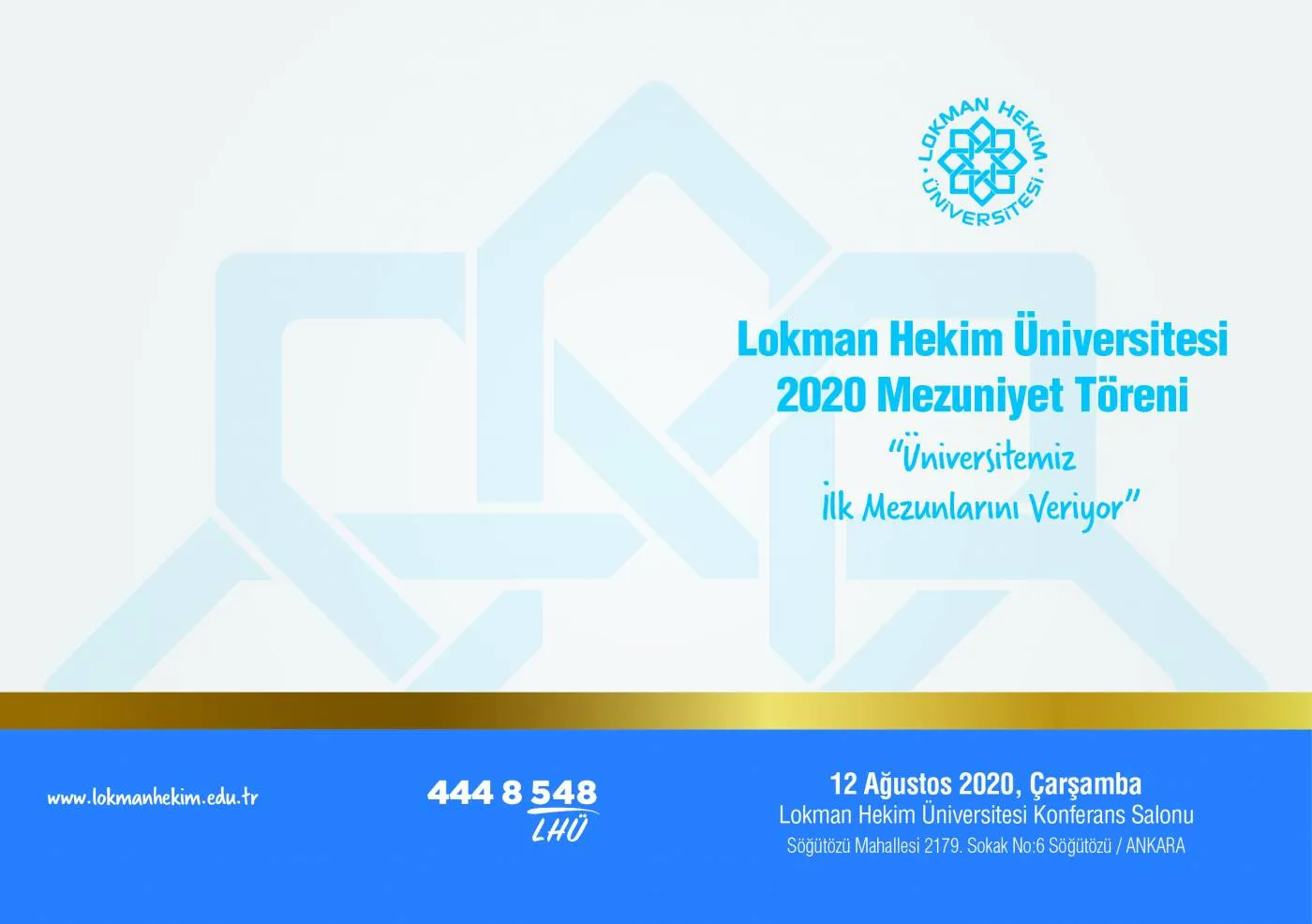 Sevgili Mezun Öğrencilerimiz, Lokman Hekim Üniversitesi “2020 Mezuniyet Törenleri” 12 Ağustos 2020, Çarşamba günü Üniversitemiz Konferans Salonunda iki grup şeklinde yapılacaktır: 1. Grup Anestezi programı Mezuniyet Töreni saat 10:00-12:00 arasında, 2. Grup İlk ve Acil Yardım programı Mezuniyet Töreni saat 14:00-16:00 arasında ayrı ayrı düzenlenecektir. Mezun olacak öğrencilerin 10 Ağustos 2020, Pazartesi günü saat 17:30’a kadar 2020 yılı Mezuniyet Törenlerine katılım durumlarını Öğr. Gör. Ebru ESENKAYA’ya 444 8 548 / 6016 nolu dahili numaradan bildirmeleri gerekmektedir. Öğrencilerin bildirdikleri katılım durumlarını bu tarihten sonra değiştirmelerine izin verilmeyecektir. Bu tarihe kadar tercih belirtmeyen öğrencilerin de törene katılmayacakları varsayılacaktır. Bu yıl törene katılacak öğrencilerin aşağıdaki bilgileri ve e-posta ile gönderilecek diğer duyuruları dikkate almaları beklenmektedir. İçinde bulunduğumuz koşullar nedeniyle, törenin mezunlarımız, yakınları ve üniversite çalışanları için ek bir sağlık riski oluşturmaması amacıyla gerekli tüm önlemler Üniversitemiz tarafından alınacaktır. Mezuniyet Törenlerinin güvenli bir şekilde yapılması için alınacak önlemlere öğrenci ve yakınlarının mutlak suretle uymaları gerekmektedir. Tören tarihleri sırasında yürürlükte olabilecek yaşa bağlı sokağa çıkış kısıtlamaları, tören katılımı için de geçerli olacaktır. Sosyal mesafeyi korumak için her mezun törene en çok İKİ yakınını davet edebilecektir. Törene 12 yaşından küçükler ve 70 yaşından büyükler (12 ve 70 yaş katılabilir) ile tekerlekli sandalye gibi özel gereksinimi olanlar maalesef katılamayacaktır. Mezuniyet törenleri için provalar 12 Ağustos 2020, Çarşamba günü Anestezi programı saat 09:00’da, İlk ve Acil Yardım programı saat 13:00’de yapılacaktır. Törende giyilecek kep ve cübbeler törenden 30 dakika önce Üniversitemiz tarafından dağıtılacaktır. Kep ve cübbeler için önlisans mezunlarından depozito olarak 100 TL nakit olarak tahsil edilecektir. Mezunların tören sonrasında cübbe ve keplerini hemen teslim etmeleri gerekmektedir. Tahsil edilen depozito cübbenin iade edilmesi ile Mezunumuza iade edilecektir. Saygı ve sevgilerimizle Lokman Hekim Üniversitesi