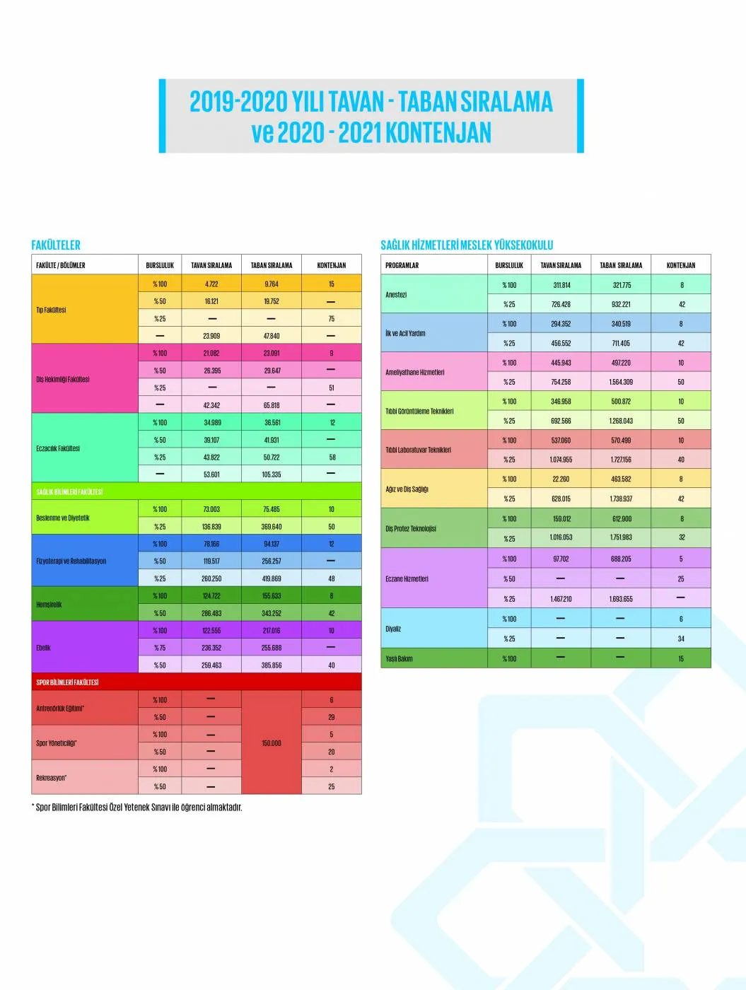 2019-2020 Taban Tavan Sıralama Ve 2020-2021 Akademik Yılı Kontenjanları Hk.