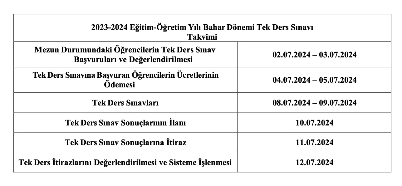 TEK DERS SINAVLARI 08.07.2024 – 09.07.2024 tarihlerinde yapılacaktır.
