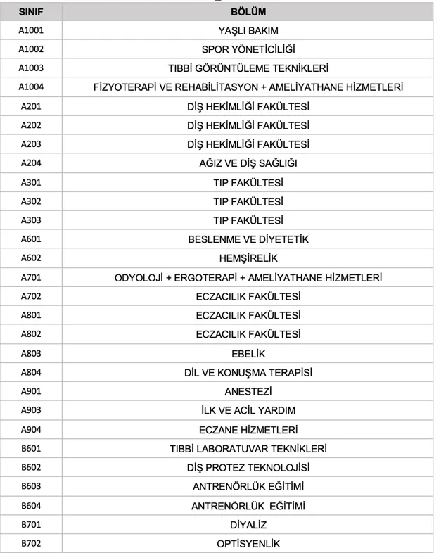 - Tıbbi Hizmetler ve Teknikler Bölümü