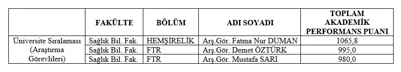 2021 Yılı Araştırma Görevlisi Bazında Akademik Personel Değerlendirme Sonuçları Hk.