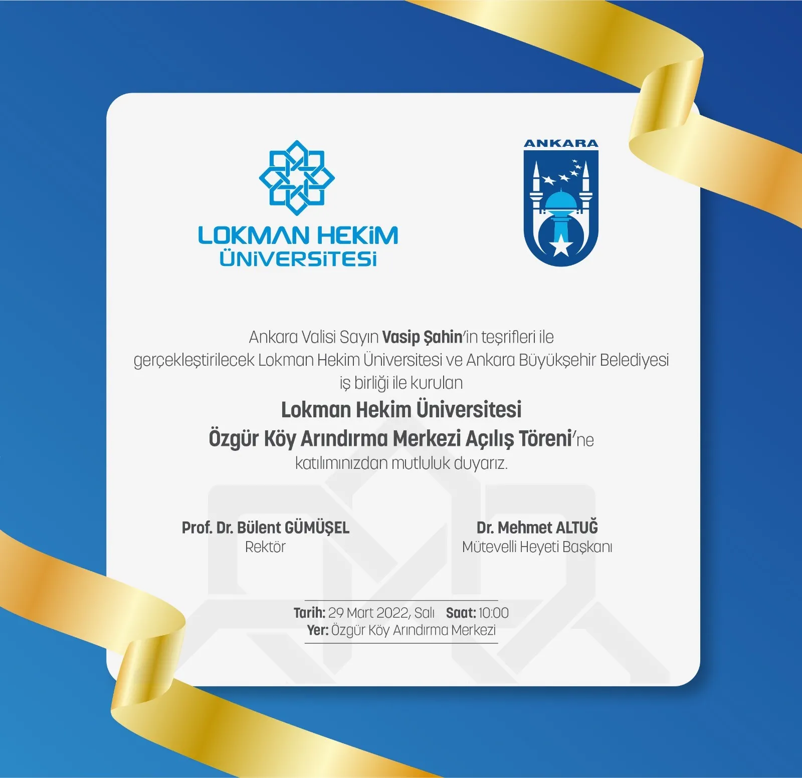 Lokman Hekim Üniversitesi ve Ankara Büyükşehir Belediyesi iş birliği ile uyuşturucu bağımlılarının tedavileri sonrasında topluma kazandırılmasında önemli bir sosyal sorumluluk projesi olan “Özgür Köy Arındırma Merkezi” açılış töreni 29 Mart 2022 Salı günü 10:00'da gerçekleştirilecektir.