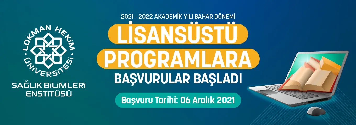 Lokman Hekim Üniversitesi Sağlık Bilimleri Enstitüsü 2021-2022 Eğitim Öğretim Yılı Bahar Dönemi yüksek lisans ve doktora programlarına ilişkin kontenjanlar belirlenmiş olup, başvurular 06 Aralık 2021-14 Ocak 2022 tarihleri arasında online olarak alınacaktır. 2021 - 2022 Eğitim Öğretim Yılı Lisansüstü Öğrenim Ücretleri için Tıklayınız