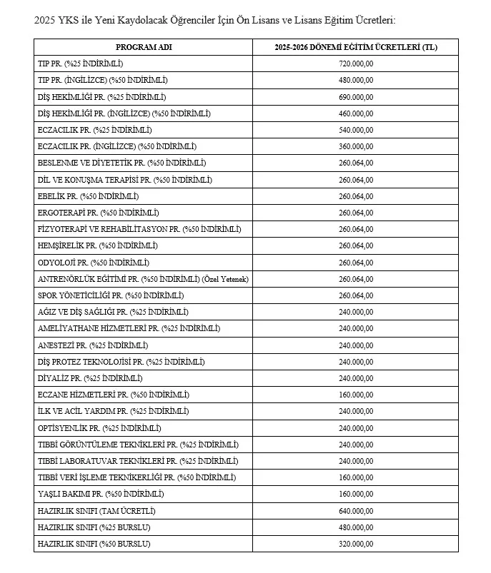 2025 YKS Sonuçlarına Göre Kayıt İşlemleri Hakkında