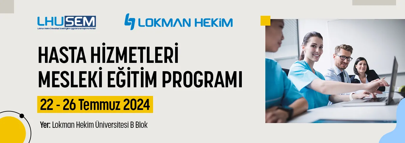 Lokman Hekim Üniversitesi Sürekli Eğitim Merkezi (LHUSEM) ve LH Akademi iş birliği ile 24- 28 Haziran 2024 tarihleri arasında yüz yüze Hasta Hizmetleri Mesleki Eğitim Programı gerçekleştirilecektir.